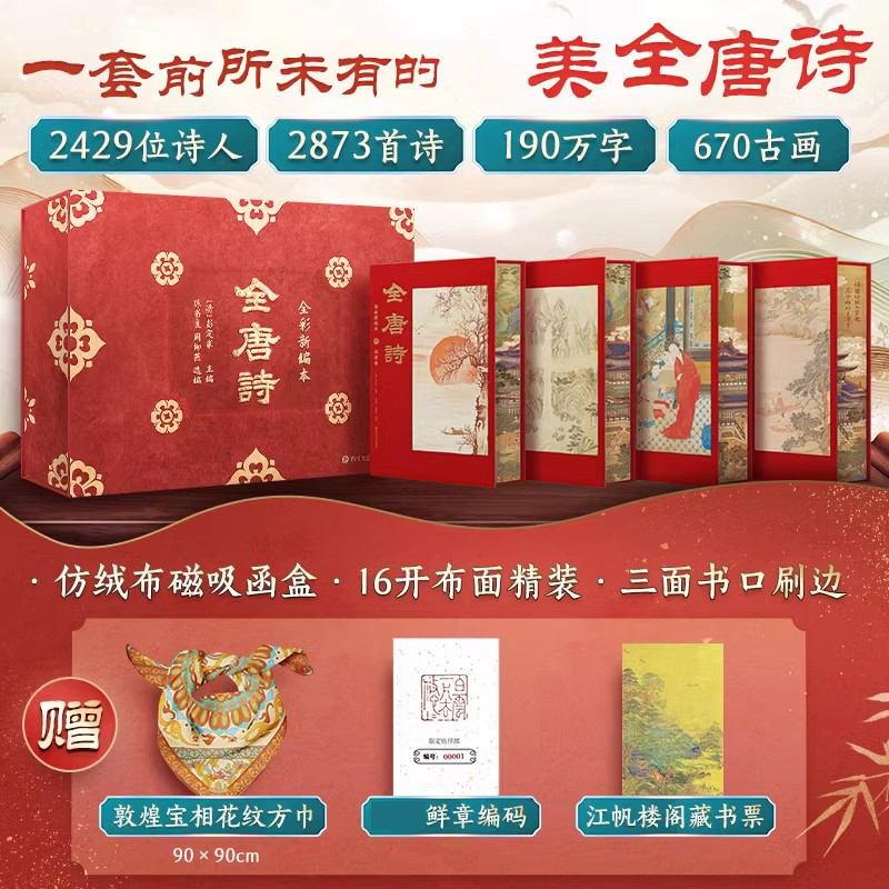 • 【仿絨布磁吸函盒 全彩插圖 刷邊版】全唐詩 (全4冊 )16開 全書共1600頁 隨書附贈敦煌寶相絲巾+鮮章+藏書票 NT$2990 詳情