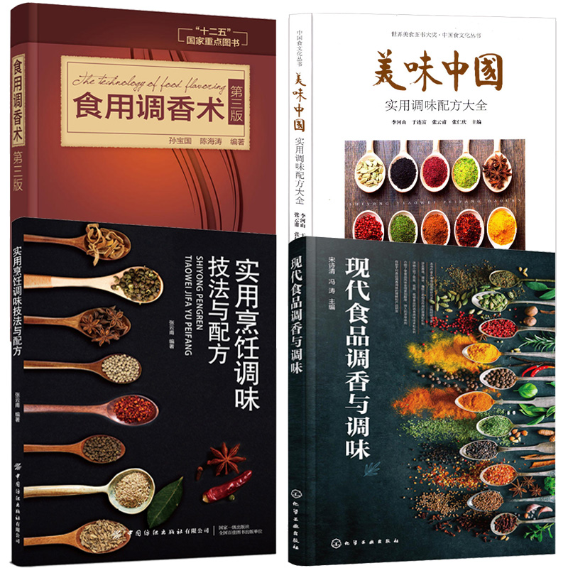(共4本)食用調香術+現代食品調香與調味+實用烹飪調味技法與配方+美味中國 實用調味配方大全 食用合成香料香精調味品醬汁醬料製作大全 香辛料研發生產加工技術 香料配方寶典