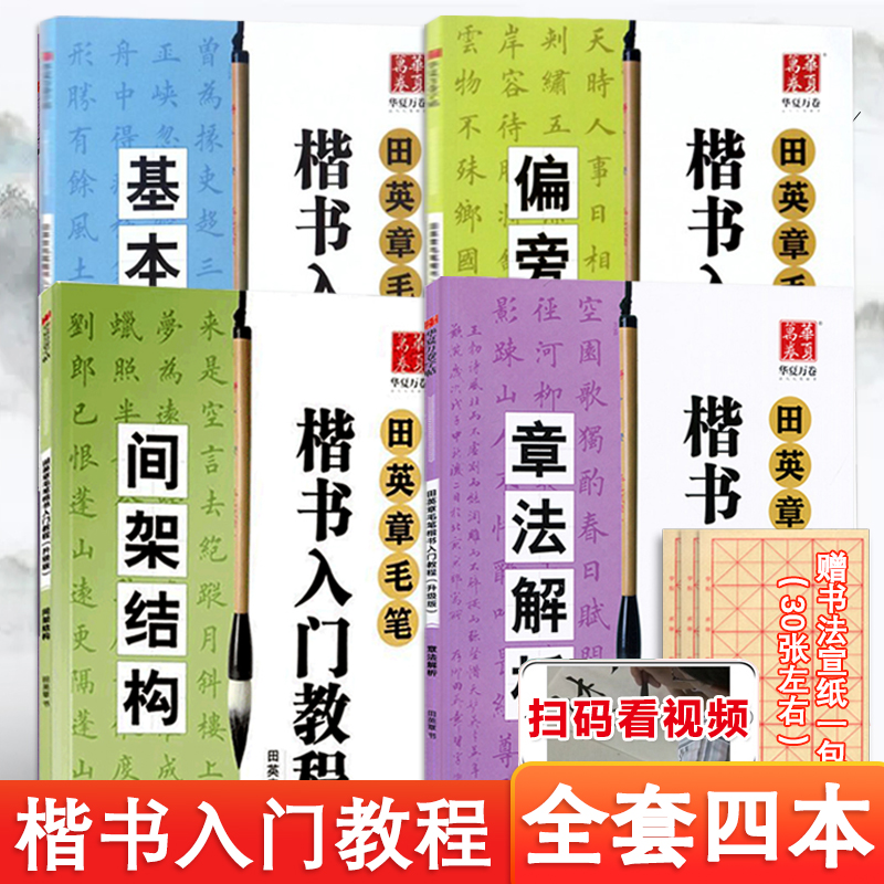 【贈視頻教程+毛筆+水寫佈+水碟】4本裝 田英章毛筆楷書入門教程 基本筆法+偏旁部首+間架結構+章法解析 從零起步學書法技法