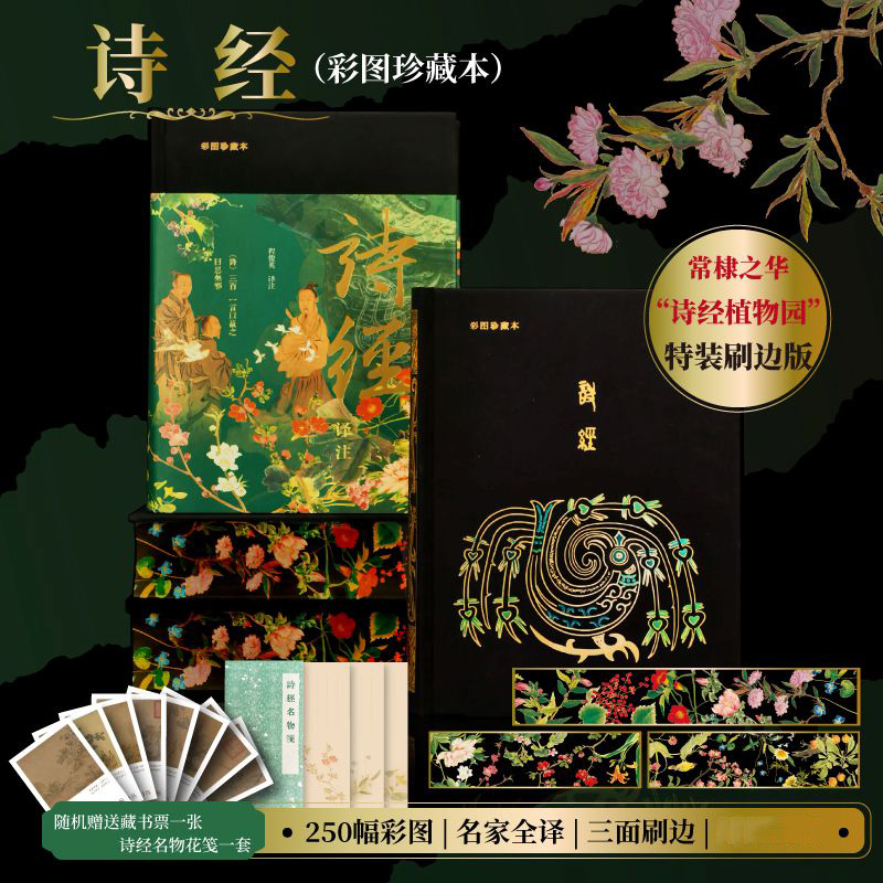 【三面全彩刷邊 布面精裝典藏版】詩經譯註 隨書附贈詩經花箋及精美藏書票