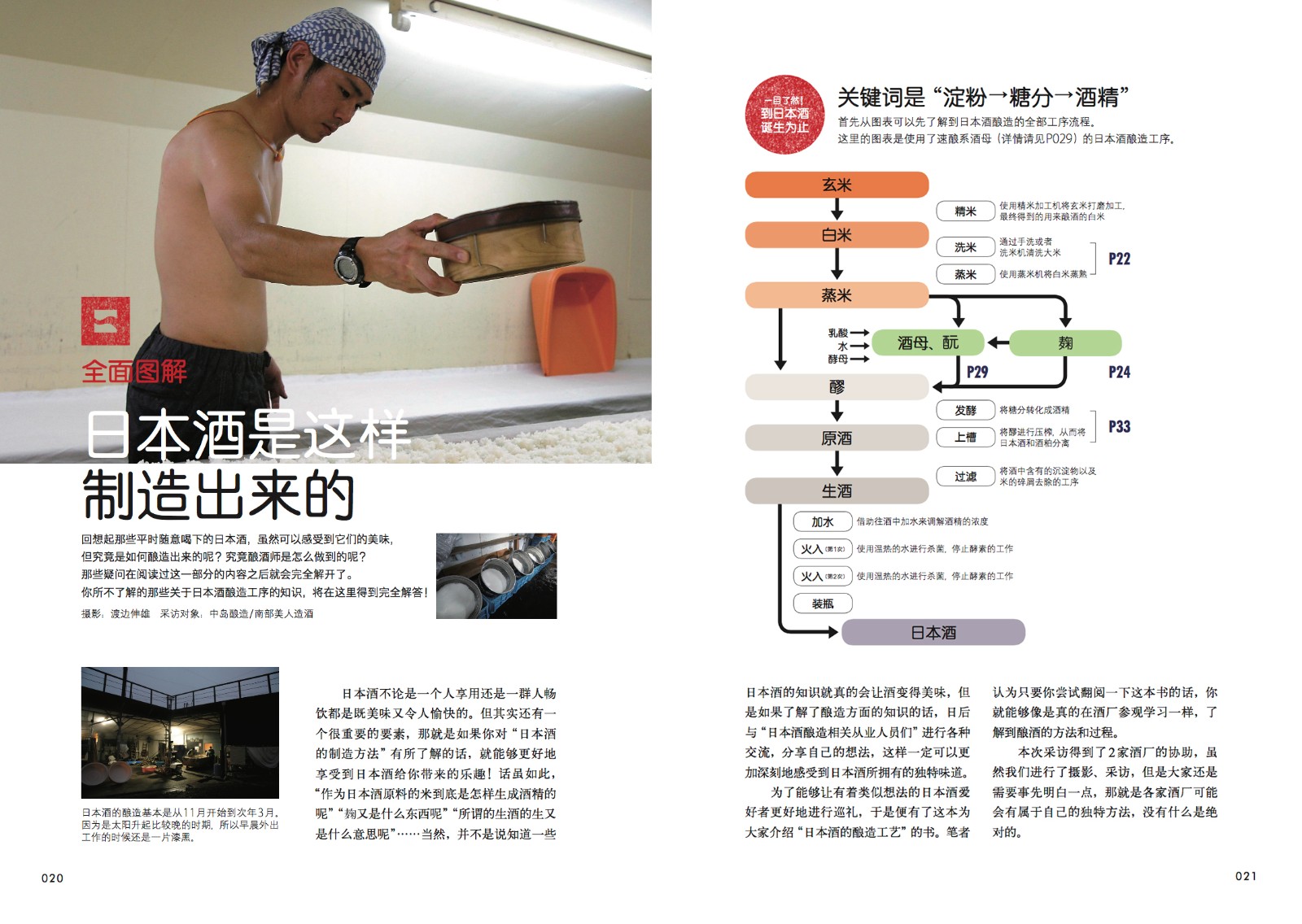 本書是介紹日本酒基礎知識及相關文化的指南書。主要講解了三個部分的內容,靠前部分首先講述了日本酒的產生背景及其文化,這是了解日本酒深奧世界的重要部分。其次對於日本酒的種類、製作方法以及酒器的搭配法等也進行了概述。同時對日本有名的釀酒產地也進行了詳述;第二部分深入講解了日本酒的相關知識:日本酒具的選擇方法,酒與食物的搭配與選擇,以及如何釀造出好酒。第三部分主要列舉了日本一些知名酒店。書中還簡要介紹了日本酒從生產、製成成品酒以及流通、消費、質量審查、健康效果、發展歷史、文化等內容。本書含有大量的圖片,但區別於單純的圖鑑,文中圍繞日本酒文化的相關知識,並有知名業內人士親身經驗和感悟的精彩介紹等。使讀者可以零門檻的了解日本酒的基礎知識和與之相關的自然、人文等精彩內容。
