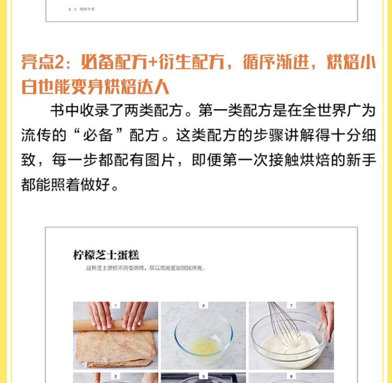 本書是經典烘焙和現代Z愛的指南,不只是告訴你該做什麼,而是向你展示拍打和折疊的區別是什麼,「軟峰」應該是什麼樣子,怎樣做酥皮。在烘焙的時候,知道指示的含義可能會讓你的蛋糕有精彩的表現,也會讓你的蛋糕變得鬆軟。這就是《烘焙全書》的用武之地。