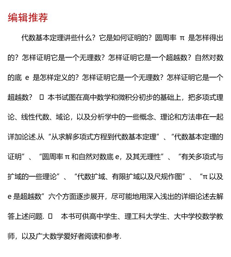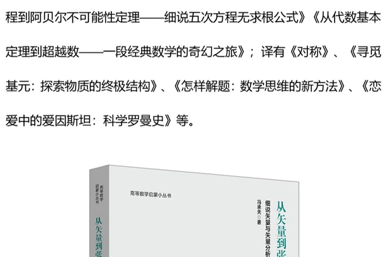 馮承天 原創數學拓展普及類從系列(全套6冊)高等數學啟蒙小叢書 從解多項式方程式到阿貝爾不可能性定理 從群到李代數定理到超越數