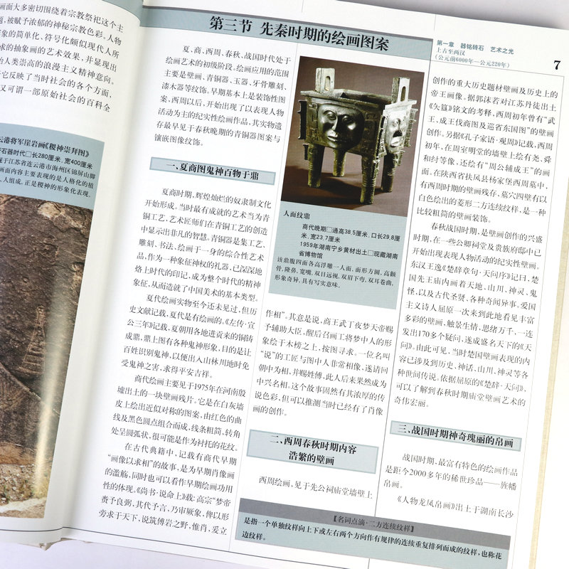 《中國藝術史圖典大系》本套7卷共8冊,分《書法卷》、《繪畫卷》、《陶瓷卷》(全二卷)、《青銅器卷》、《玉器卷》、《金銀器卷》及《工藝品卷》。全書以史為序,以物證史,系統敘述中華文明的發展歷程、時代特徵和藝術成就,力求藝術性與學術性的 結合,為藝術愛好者提供藝術史知識和美學享受,也可作為藝術史研究提綱挈領的指南。所收錄的藝術品,既囊括經典的傳世品,也突顯當代考古新發現。經過中國文物學會專家委員會經年磨礪,內容 精當,版式美觀,圖文並茂。編排過程充分利用新科技手段,既突顯古老文明的莊重優雅,又不失通俗時尚。