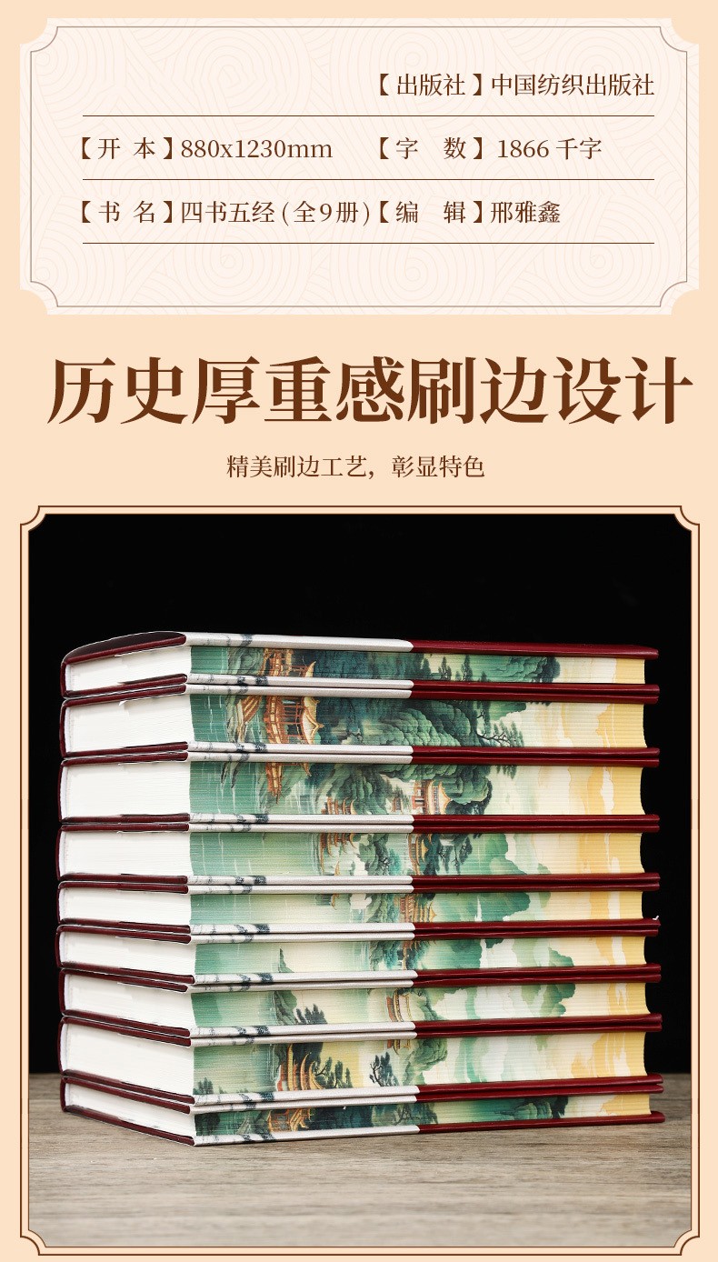 四書五經 刷邊版(全9冊) 詩經 周易 春秋左傳 孟子大學 中庸 尚書 禮記 論語 國學經典書籍