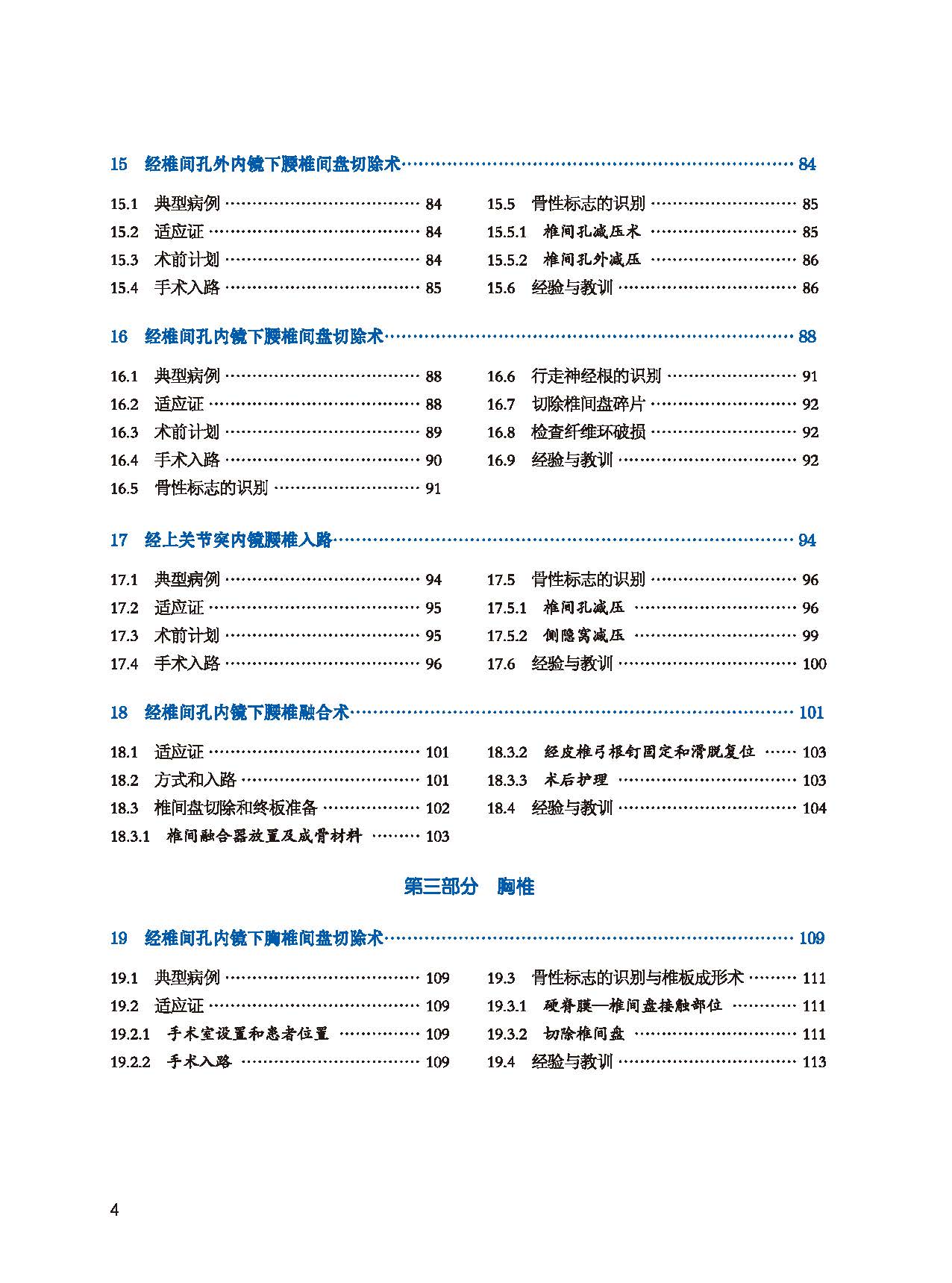 本書分為五部分,第一部分為基礎篇,介紹了內鏡脊柱手術的麻醉、設備、影像準備等;第二至第四部分按照腰椎、胸椎、頸椎部位分篇,以step-by-step的形式,詳細介紹了內鏡脊柱外科手術在脊柱各個部位的應用;複雜與疑難病例單獨分篇在第五篇介紹。附錄介紹了AO命名法,以規範內鏡脊柱外科手術的術語應用。
