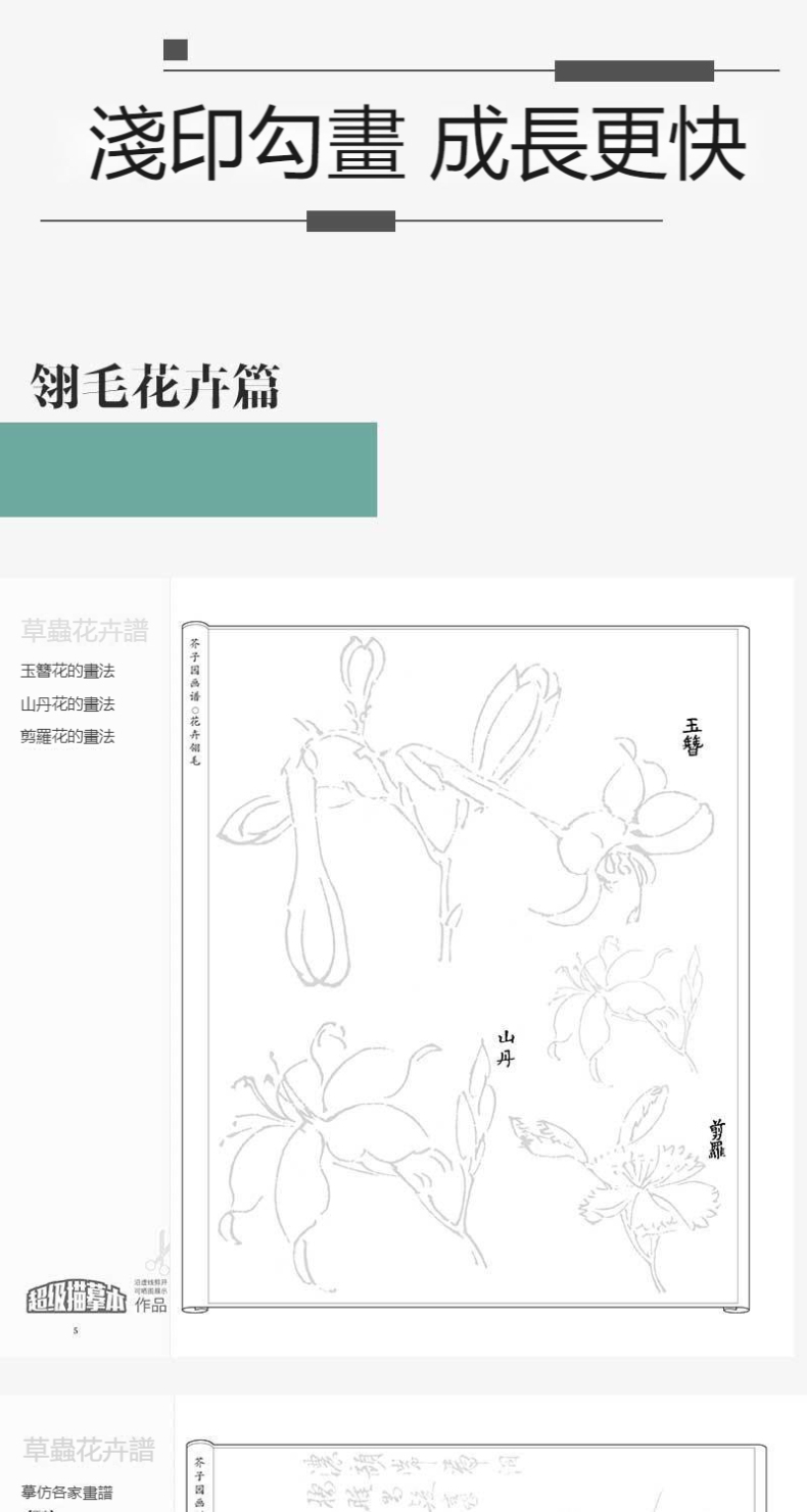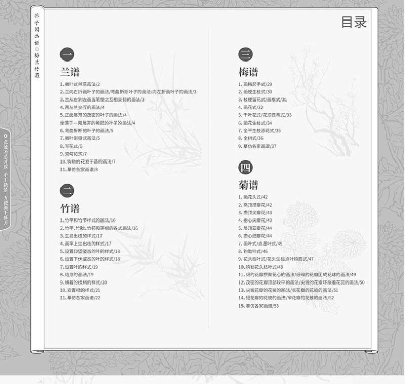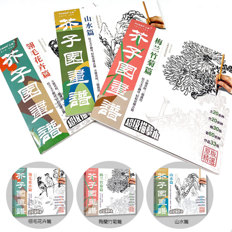 芥子園畫譜全集 4冊 山水林樹 翎毛花卉 人物 梅蘭竹菊 工筆白描超級描摹本 中國畫入門臨摹教材