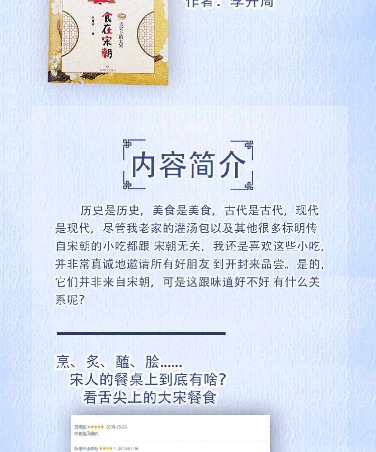 它是隨筆,跟著作者信步閒逛於宋朝的市井鄉間:每道菜背後有什麼名堂,菜市貨攤新上了什麼,寒食重九、春秋社日有哪些熱鬧,知名的文士學者為“吃”留下了哪些佳話、笑話……歷史風物皆有跡可循。