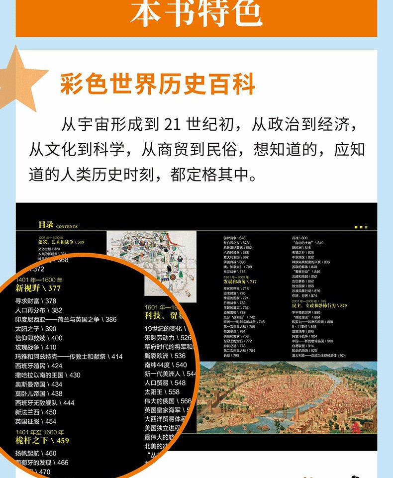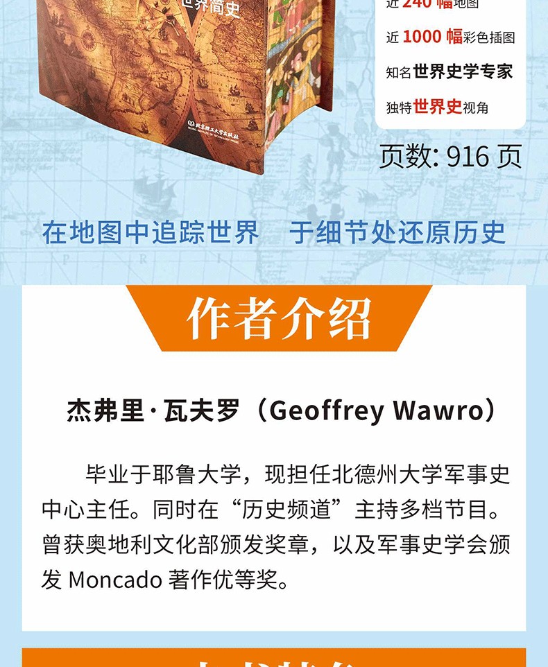 3.《歷史》承接作者杰弗裡·瓦夫羅一貫文風,以大量細節呈現,詳述了從地球起源、人類出現直到“911”之後世界的政局和形勢變化,書中描寫了很多國內同類書中不曾有的歷史細節,堪稱一部世界歷史百科全書。