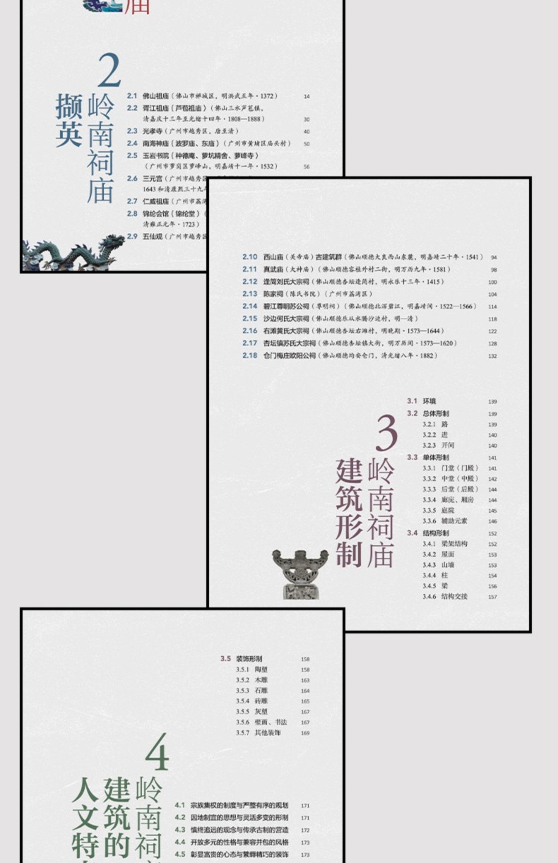 嶺南祠廟一闋+佛山祠廟建築 (共2冊) 嶺南建築特色與演變歷史 祠廟古建築形制研究 祠廟古建築測繪 嶺南祠廟裝飾形制 傳統建築設計研究參考