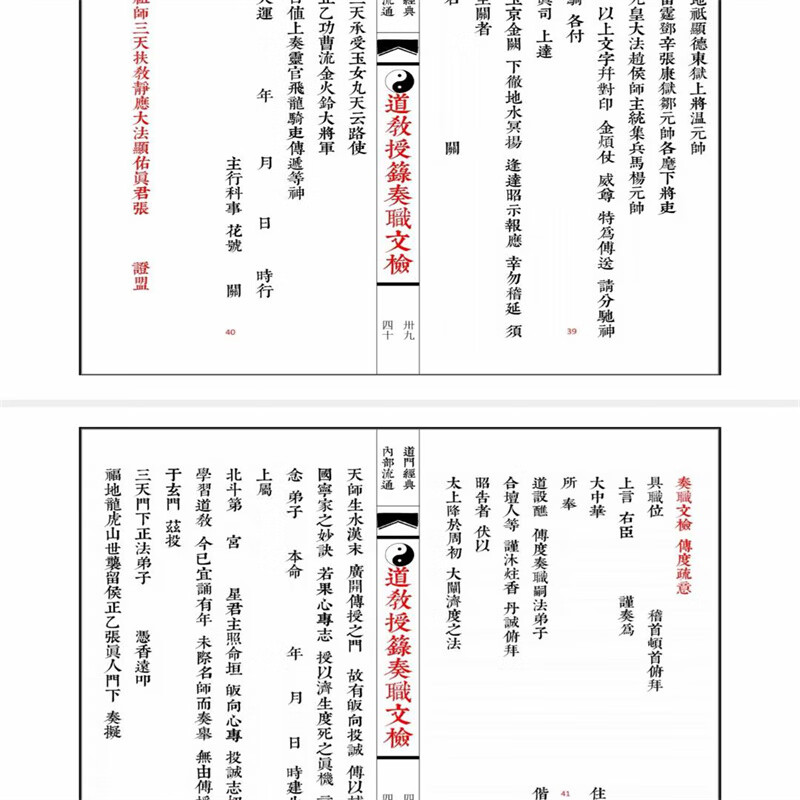 《道教授籙奏職文檢》全四冊 繁體豎排 線裝彩印
