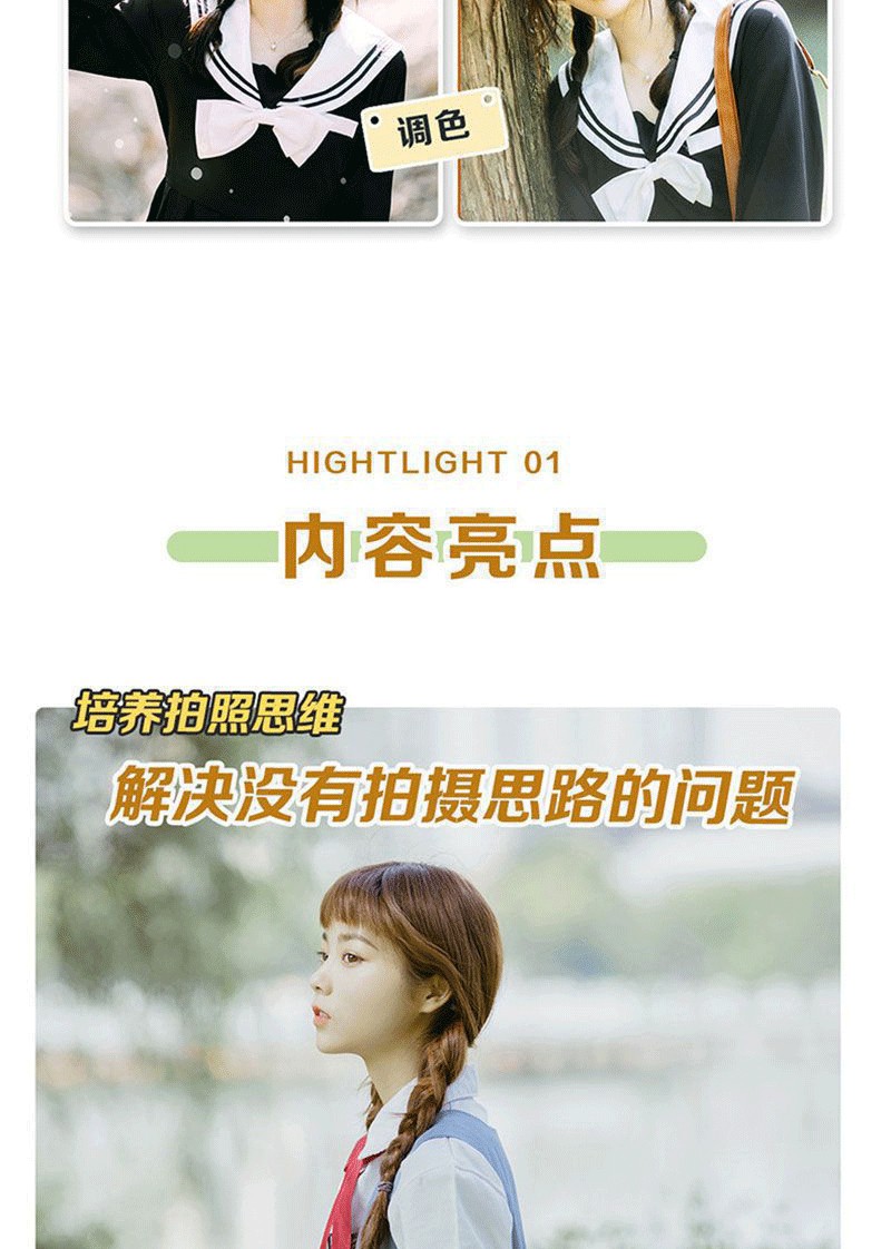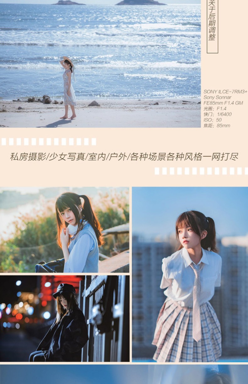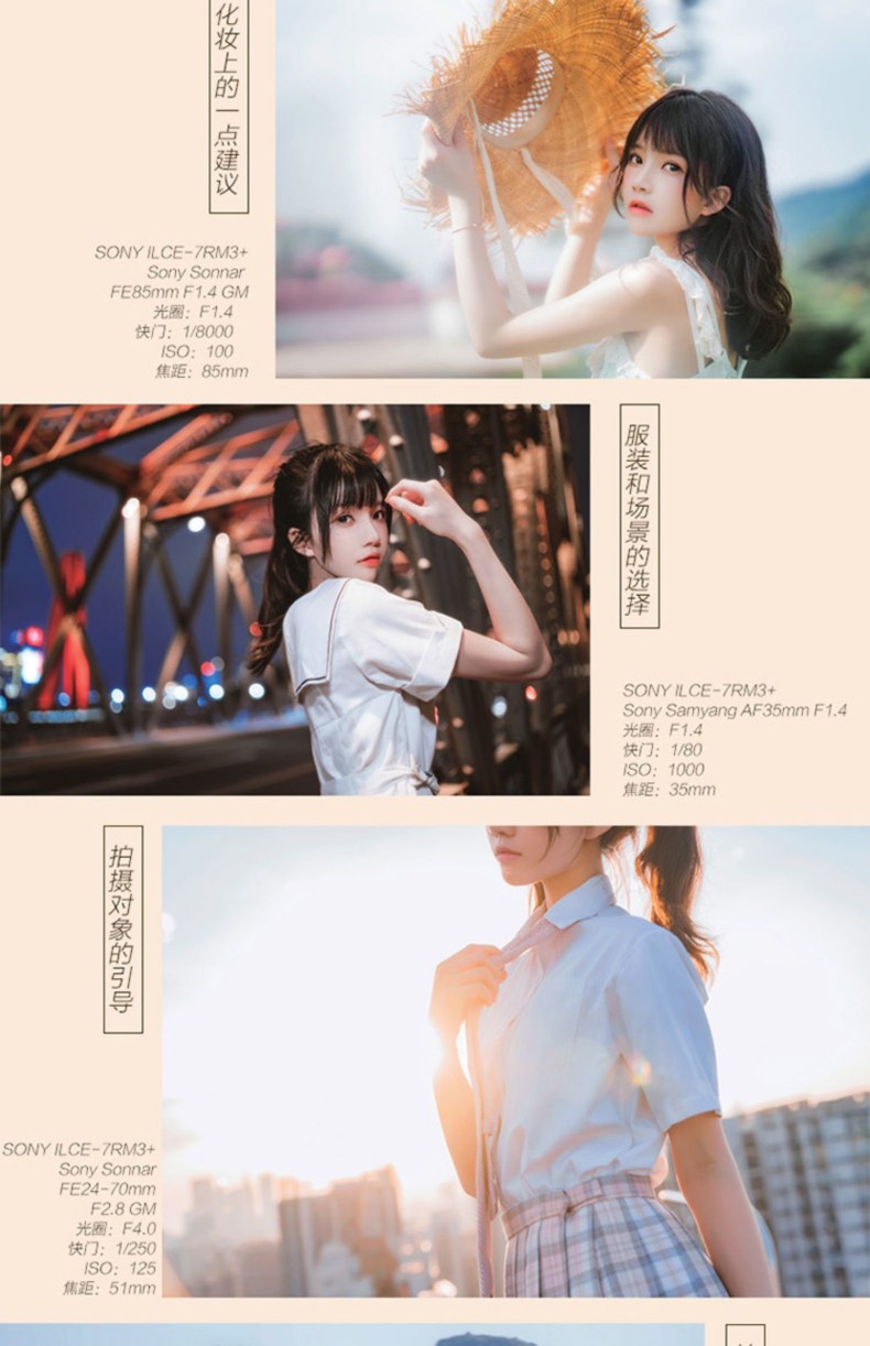 "1資深人像攝影師陳韜(西瓜呆毛汪)繼暢銷圖書《少女寫真日誌》之後攝影教程力作! 2知名人像模特櫻桃喵全程參與,全書出鏡! 3全彩印刷,無光銅紙張,近300頁超多乾貨內容! 4私房攝影、少女寫真,室內、戶外、各種場景各種風格一網打盡! "