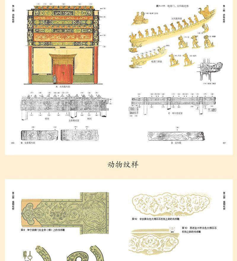 全書正文分為“皇城建築裝飾紋樣”“皇城建築裝飾色彩”“皇城建築裝飾評價”和“皇城建築裝飾圖樣”4個部分。