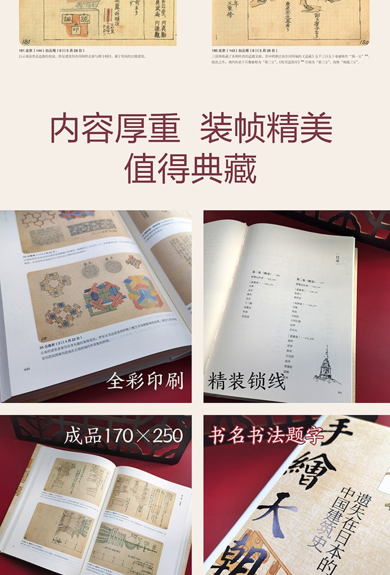 ★四色印刷,900餘幅手繪圖片記錄中國古代建築以及風土人情,圖像細緻入微、精美豐富。