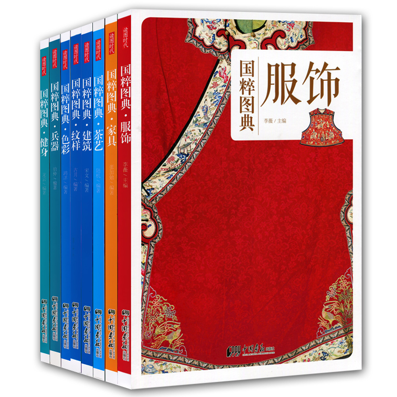 國粹圖典8冊 (共8本)紋樣 服飾 色彩 建築 兵器 家具 茶藝 健身 古代紋樣圖典 素材集 傳統寓意吉祥圖案