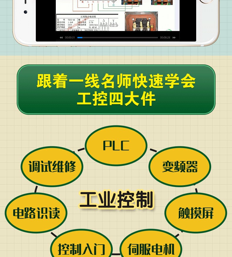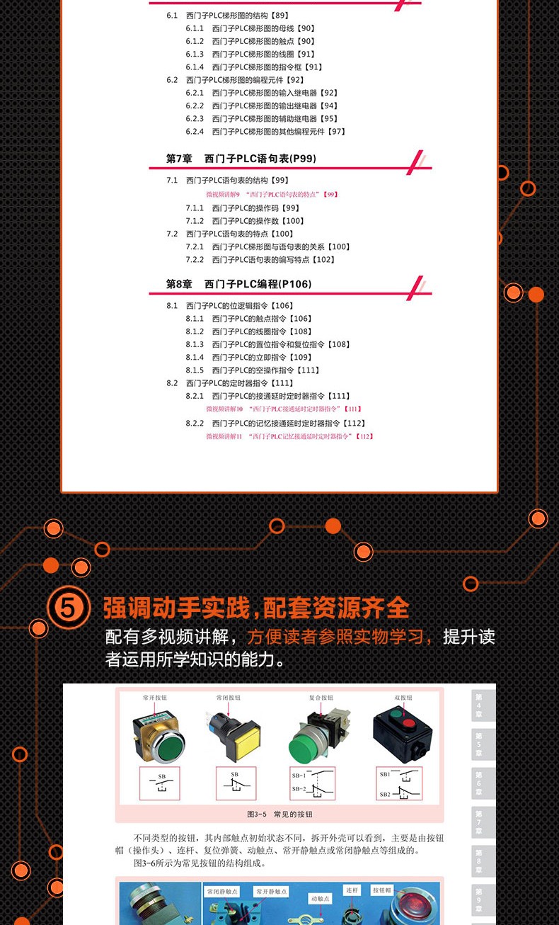 1 配套視頻演示與講解:精要分析各類型電氣控制原理,展示具體電氣控制細節與控制操作、接線、安裝、檢修技巧,直觀、易懂。