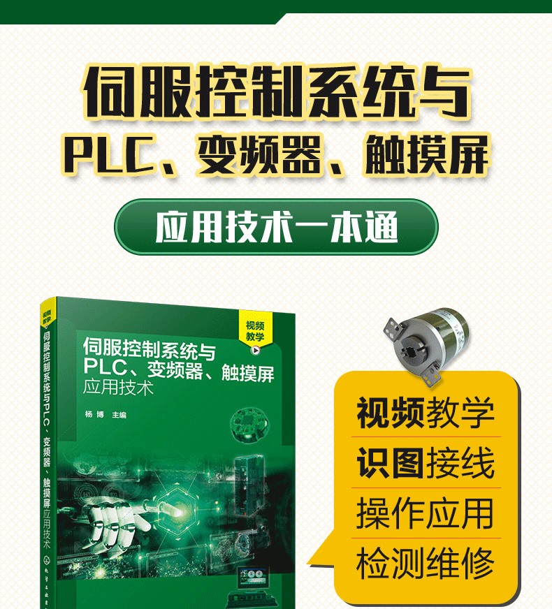 《伺服控制系統與PLC、變頻器、觸摸屏應用技術》一書全面介紹了伺服控制系統、PLC、變頻器、觸摸屏實現電氣控制的全部基礎知識與控制應用技術。書中既有基本電路識讀講解,又有電氣控制與原理、組裝調試、編程、檢修的步驟,同時兼顧智能控制新型電氣設備的應用,可供電氣控制技術人員、電工、電子技術人員全面學習。