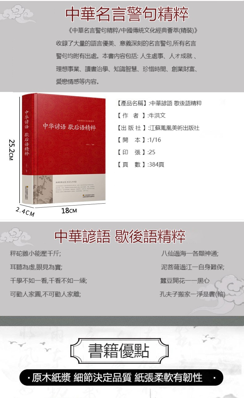 【中華名言警句精粹+中華諺語 歇後語精粹】2冊 人生處事,知識智慧,創業財富,哲學典故,圖文並茂,內容簡單易讀(免運費,貨到付款)