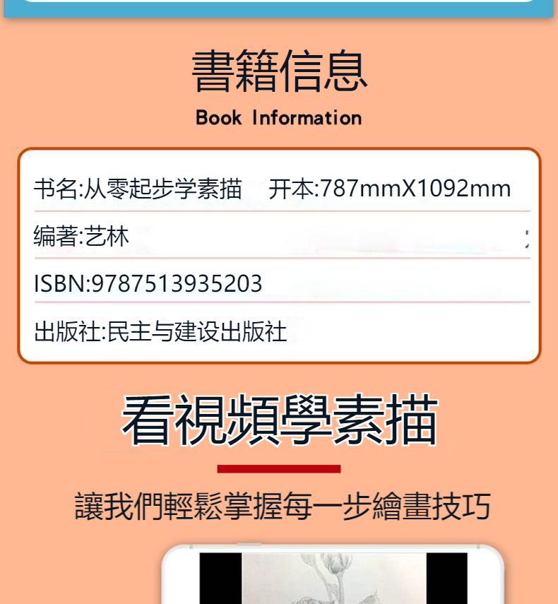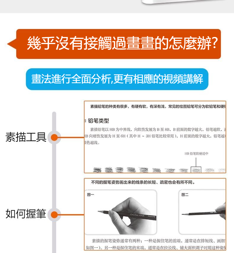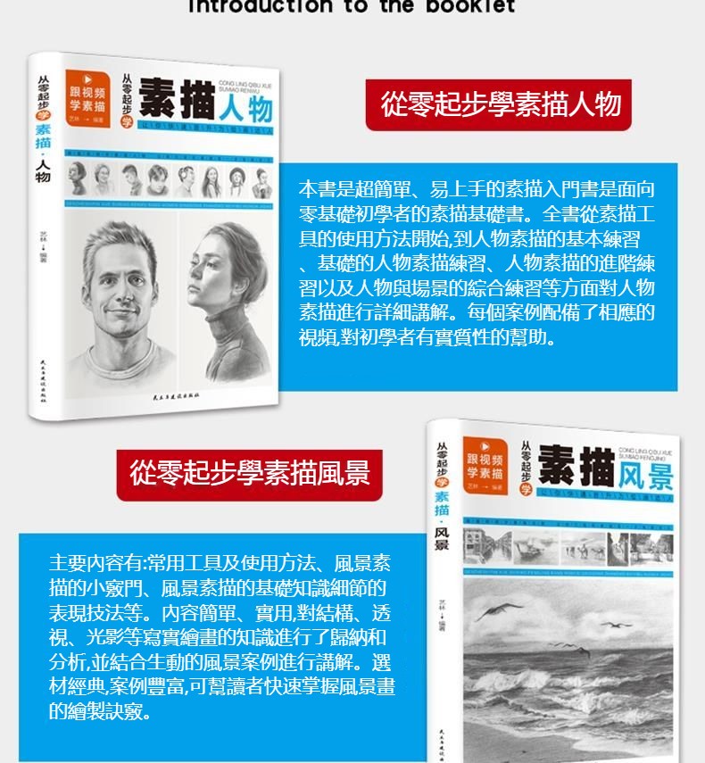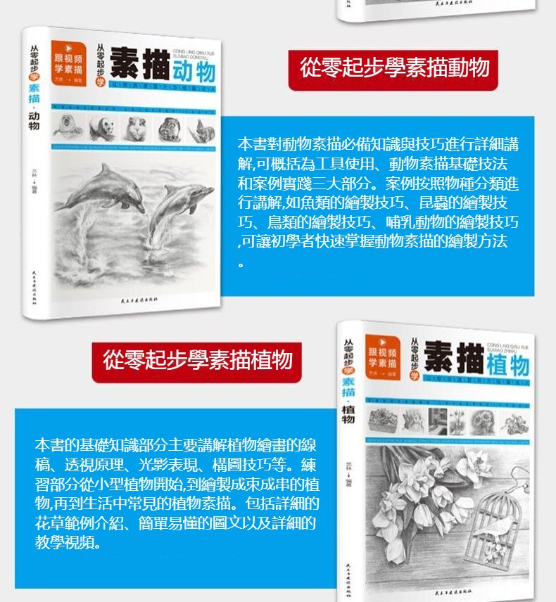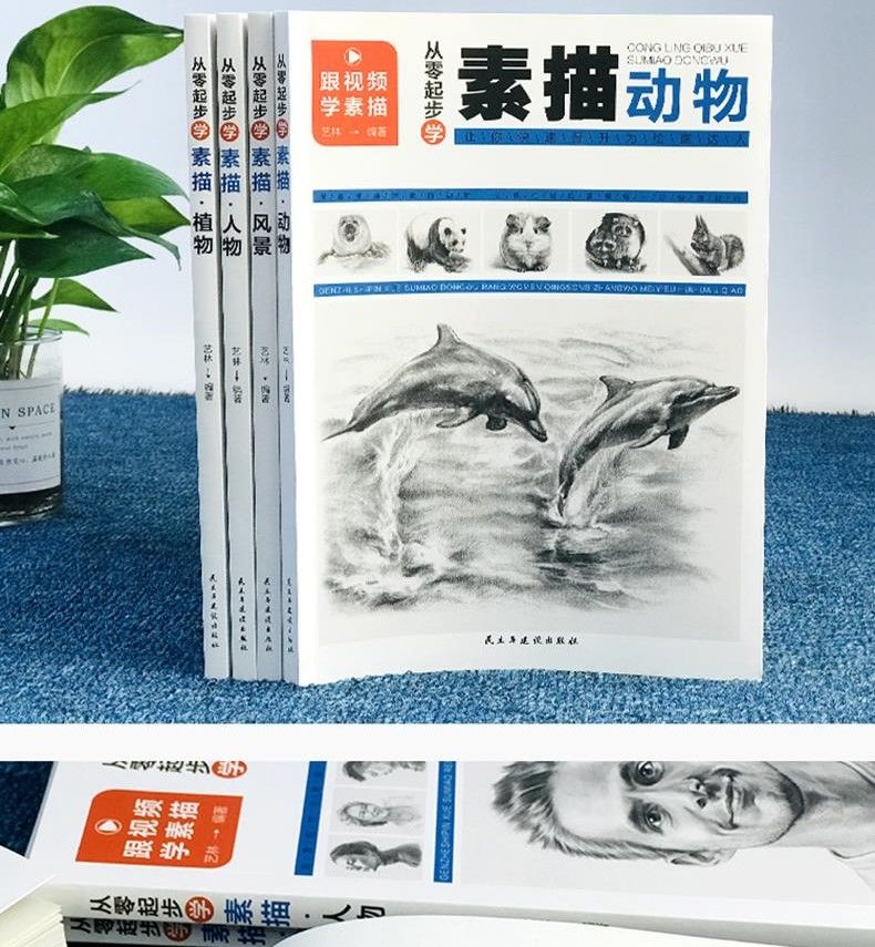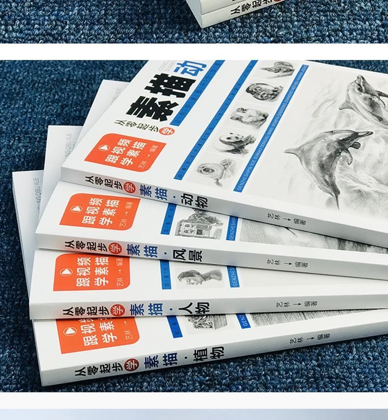 全4冊 素描書零基礎教程教材從入門到精通自學臨摹風景人物美術繪畫,附視頻教程
