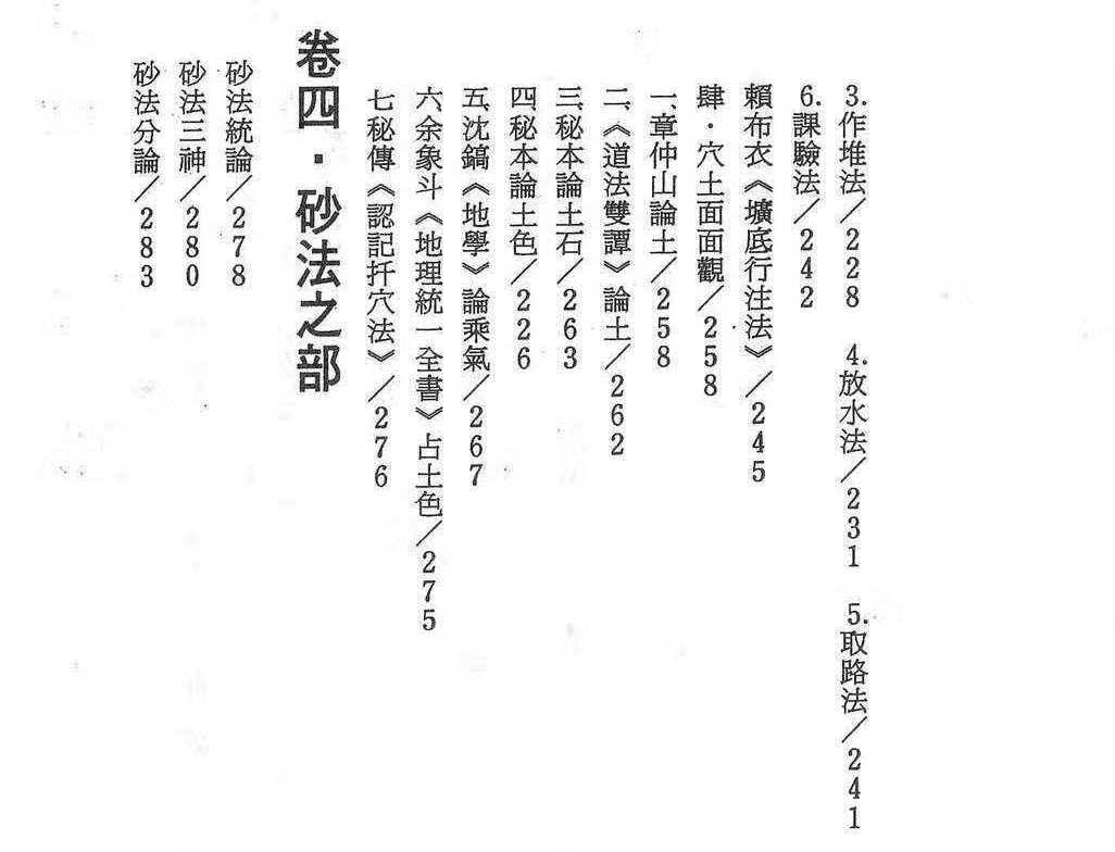 (作法秘旨歌)點穴法  穿壙法  作堆法  放水法  取路法  課驗法