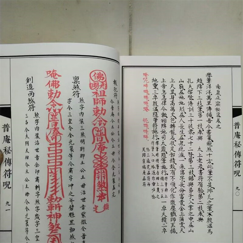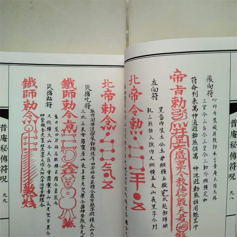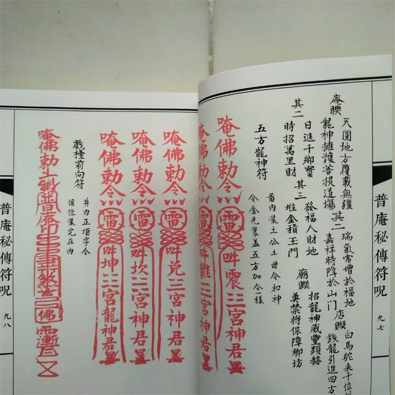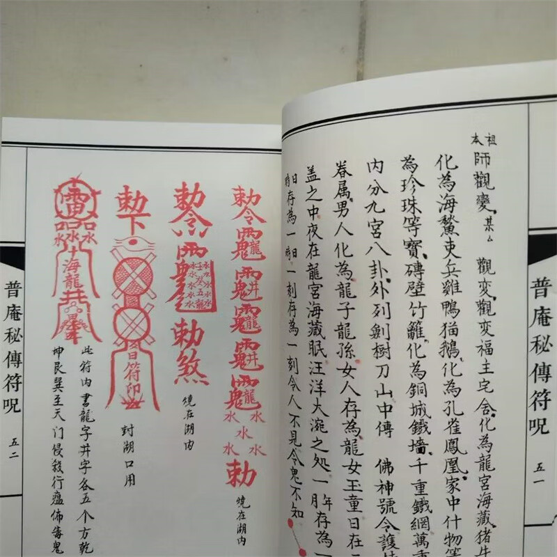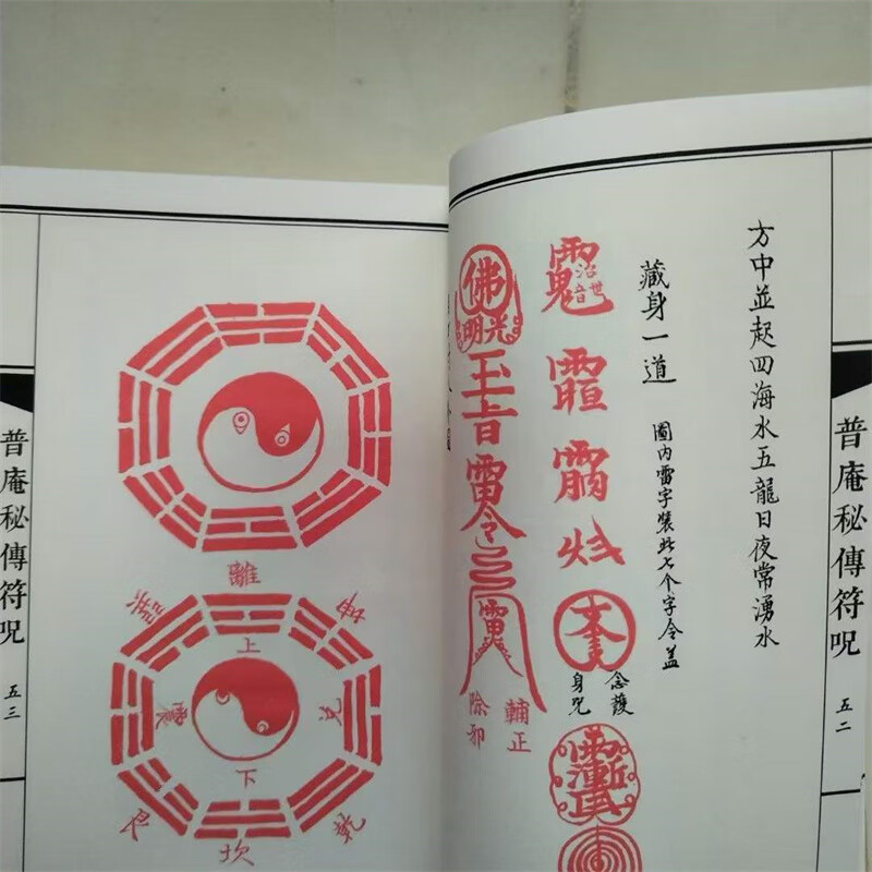 普庵祕傳符咒《傳錄南泉正宗符命香水》 內含:發文書肅字下加令,燒文書牒上書誦地加令,秉佛水肅字下加令,報犯肅字下加令,解穢肅字下加令一宗,上孝肅字下加令一宗,發喪祭車肅字下加令一宗,僧家發車用,飛煞一宗勅水碗,送煞一宗,送白虎一宗,埋官符一宗肅字下加令,豎枱一宗,靖宅一宗,大斷後一套,回奉一宗,藏湖一宗,關女人六甲一套,藏身一道,湖口封八卦圖等