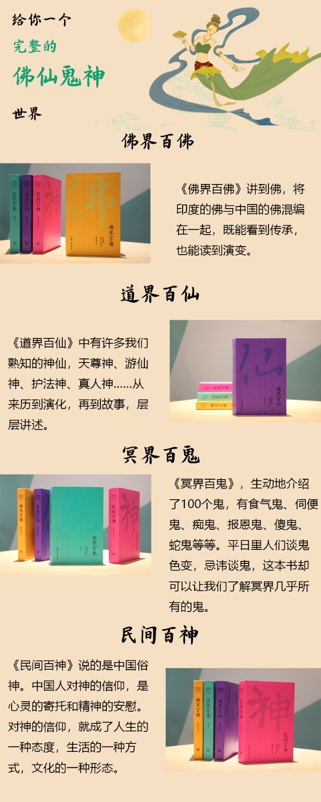 《冥界百鬼》為其中一冊。生動地介紹了100個鬼,有食氣鬼、伺便鬼、癡鬼、報恩鬼、傻鬼、蛇鬼等等,不少連名字都沒聽過。平日人們談鬼色變,忌諱談鬼,《冥界百鬼》卻可以讓我們了解冥界幾乎所有的鬼,既有惡鬼,又有善鬼,從百鬼故事中獲得許多做人的道理。