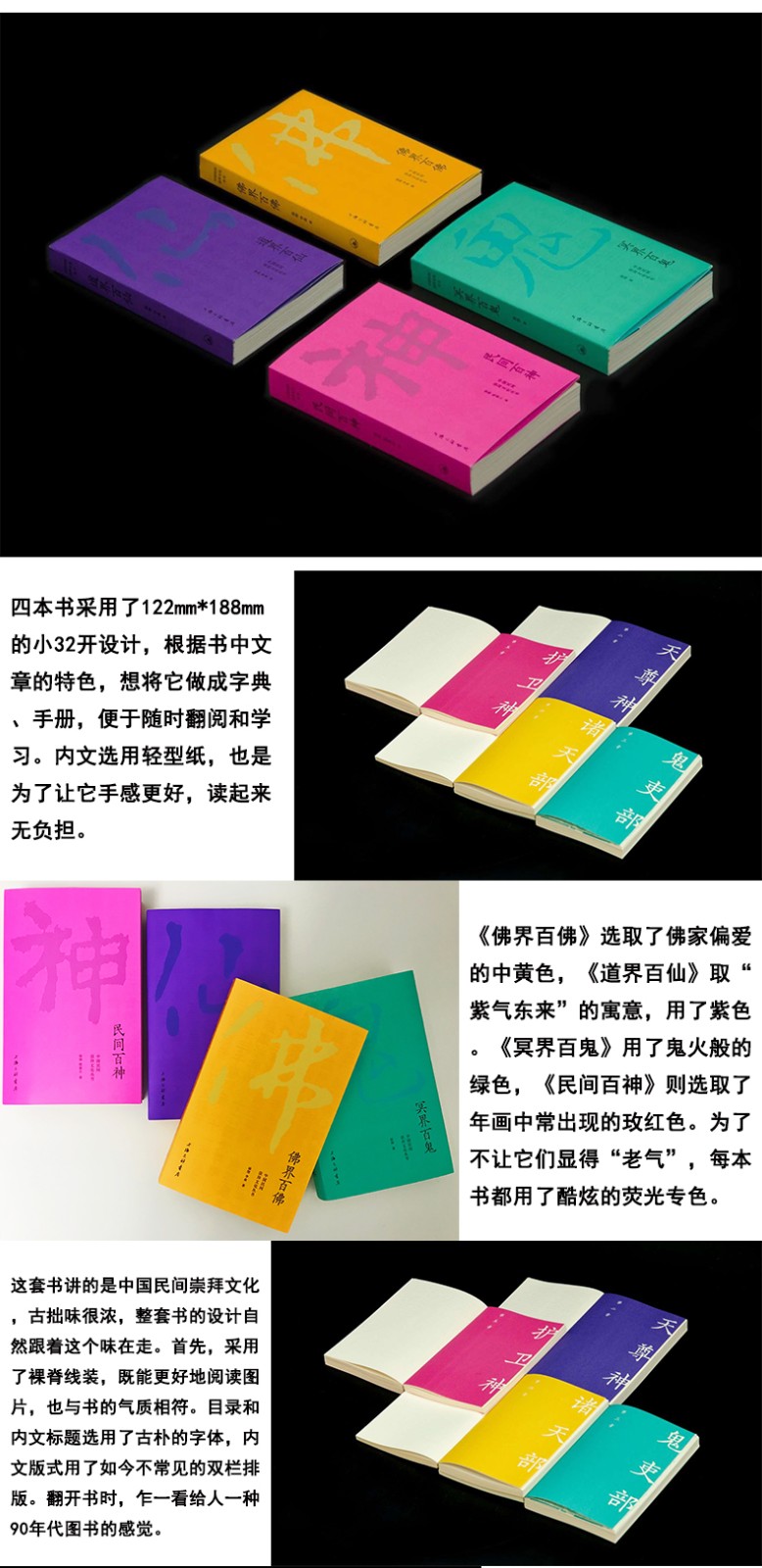 「中國民間崇拜文化」叢書共四冊,分別是《佛界百佛》《道界百仙》《冥界百鬼》《民間百神》,是中國著名晚晴史學者徐徹先生研究佛仙鬼神的代表作。文字乾淨、生動、典雅,帶給人讀小說的愉悅。這套書或許不能算是開創性的著作,但對一百個佛仙鬼神的記錄,不僅在古書的基礎上作了大的補充,還寫出了自己的味道,在當下極為稀有,可稱為無二之作。 《道界百仙》列創世神、天尊神、星宿神、遊仙神、真人神、護法神、佑民神、居家神、山澤神和匠作神等共一百仙。