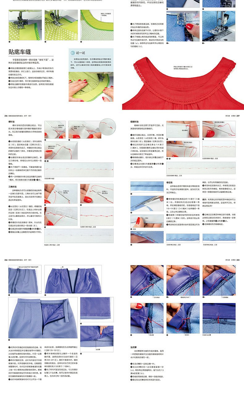 針對具體面料(從蕾絲到氯丁橡膠)的專業縫製方法;