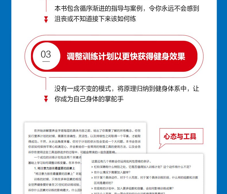 The Muscle and Strength Pyramids 中文簡體版重磅上市 “健身先健腦”公眾號創辦人、Keep、丁香醫生簽約作者Ruki傾情翻譯 這是一本 不需要太多健身經驗也能讀懂 能在短時間內幫助你構建健身認知體系的書 沒有偽科學,沒有晦澀難懂的術語!不管你是想減脂還是增肌 本書都用科學、簡單易懂的語言告訴你 如何建立和調整營養與訓練計劃,以實現你的健身目標 基於詢證科學evidenced-based science 真正嚴謹的健身訓練體系 英文原書已被翻譯為日文、西班牙文......