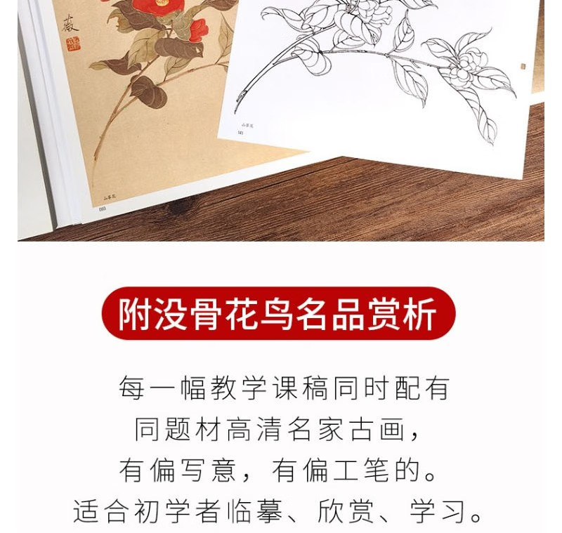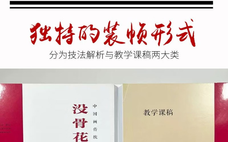《中國畫傳統技法教程·沒骨花卉日課》是針對國畫初學者所策劃的一本沒骨花鳥畫技法書。 全書框架分概述、沒骨技法解析、草本花卉、木本花卉、禽鳥、草蟲及教學課稿七個部分。 其中沒骨技法解析、草本花卉、木本花卉、禽鳥、草蟲屬於技法講解部分,技法講解部分精選50餘種花卉,10種禽鳥及10種草蟲,並對每一種內容進行詳細的講解 。 每種內容的講解分花鳥介紹、相關畫稿、相關作品、分步驟講解及歷代沒骨花鳥名品賞析五部分。 教學課稿部分為技法講解部分相對應的畫稿及作品的原大排列,更方便讀者檢索、臨摹、學習。