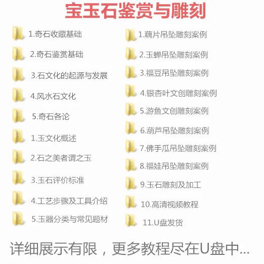 玉石雕刻教學U盤32G 教程視頻 自學全套玉器雕教學技法加工鑑定優盤