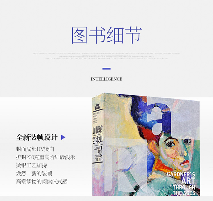 本書是以西方藝術史為主線的《加德納藝術史》的經典版,包括了西方史前藝術、古希臘羅馬藝術、中世紀藝術、文藝復興藝術、巴羅克與洛可哥藝術、18世紀藝術、19世紀藝術、現代藝術與當代藝術等內容。本藝術史關注藝術的歷史與文化背景,注重普及性與趣味性,力求明白易懂,致力為更廣大藝術愛好者開啟藝術聖殿之門。