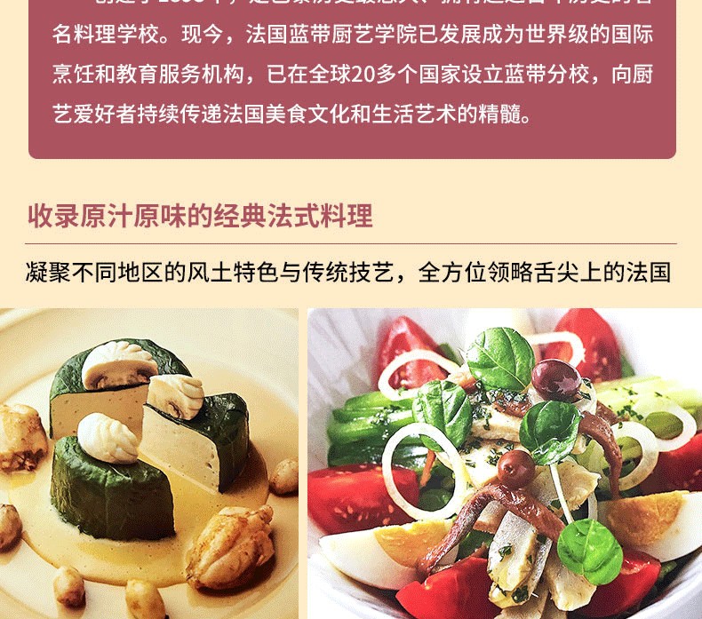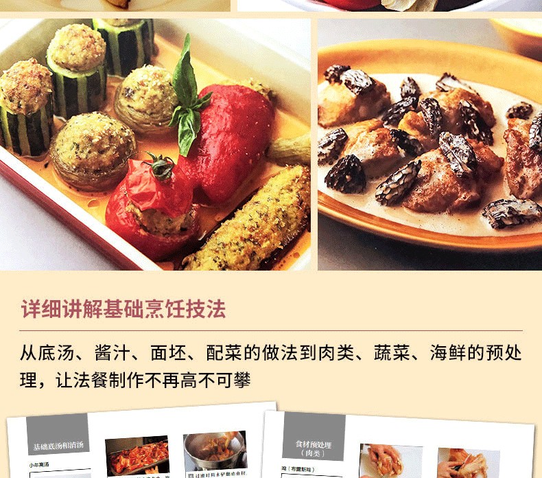 本書依據行政和美食區劃,將法國劃分為22個地區,書中詳細介紹了不同地區的地理氣候、人文歷史、特色物產及飲食文化,並選取了每個地區代表性的共83道特色料理,分步詳解製作方法。還包括底湯、醬汁、面坯、配菜的做法和肉類、蔬菜、海鮮的預處理等基礎烹飪技法。讀者通過本書能夠全面了解法國不同地區的風土人情和地道特色料理。