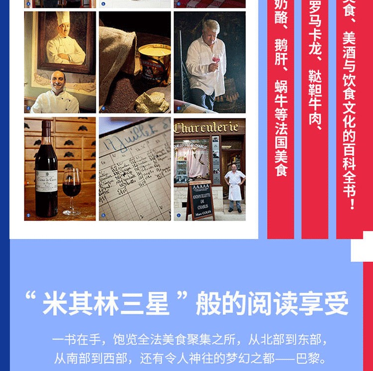 《法國美食之旅》是全法著名的美食作者三十年努力的成果,足跡按順時針方向沿著法國的輪廓,從北部到東部,再到南部、西部,然後再回到巴黎,途經全法美食聚集之所。介紹法國上佳名廚、美食和充滿天賦的美食工匠。從世界聞名的香檳到寂寂無名的“醃鯔魚籽”,從傳統美食肥鵝肝到另類美食“蜜汁”,本書匯聚所有葡萄酒和菜餚,大廚和工匠,讓讀者感受高品質的法國美食。它將帶你走上色彩繽紛的美麗旅程,向你展示超棒的法國特色美食,以及它們的製作者。法國美食已被列入世界非物質文化遺產名錄。