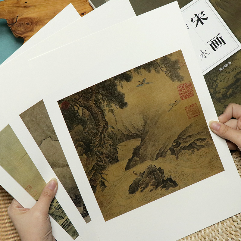 全4冊 宋畫山水花鳥畫冊頁團扇96張 正8開 散頁裝幀 高清圖臨摹裝裱收藏