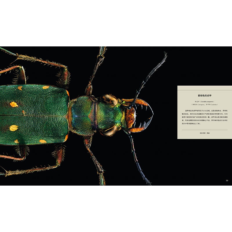 《牛津大學終ji昆蟲圖鑑》甄選牛津大學自然史博物館700 多萬昆蟲標本,其中包括達爾文等時代先驅收集的珍品,由攝影藝術家列文· 比斯透過開創性的超微距攝影技術,捕捉到昆蟲前所未*的肖像。