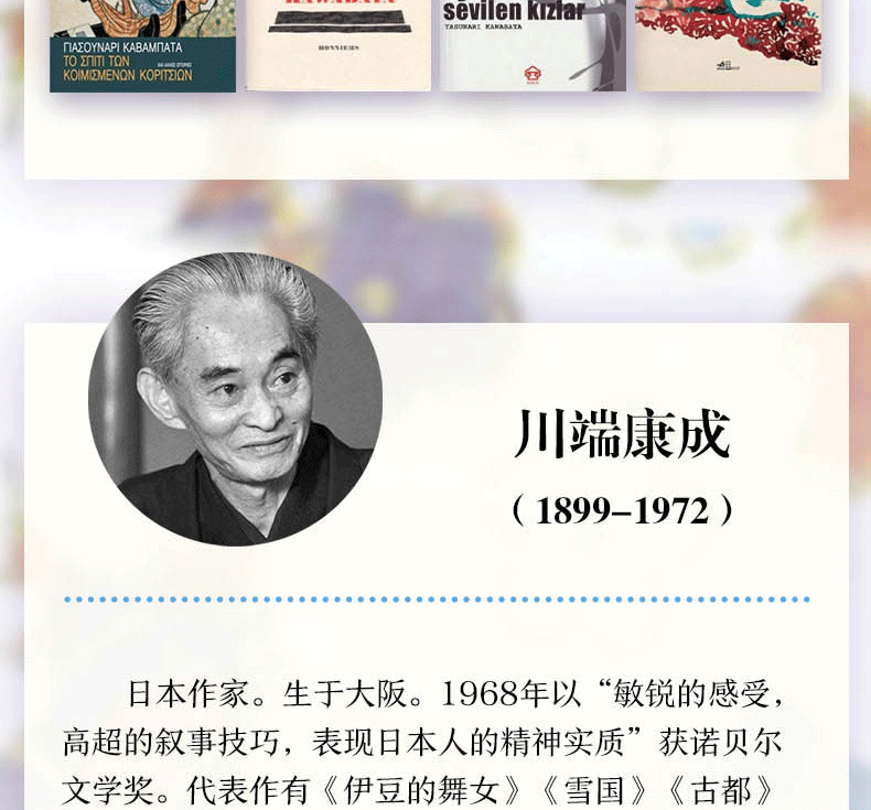 諾貝爾文學獎獲得者川端康成《伊豆的舞女》《雪國》《古都》《千隻鶴》《睡美人》《山音》