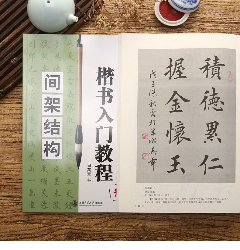 【贈視頻教程+毛筆+水寫佈+水碟】4本裝 田英章毛筆楷書入門教程 基本筆法+偏旁部首+間架結構+章法解析 NT$1285
