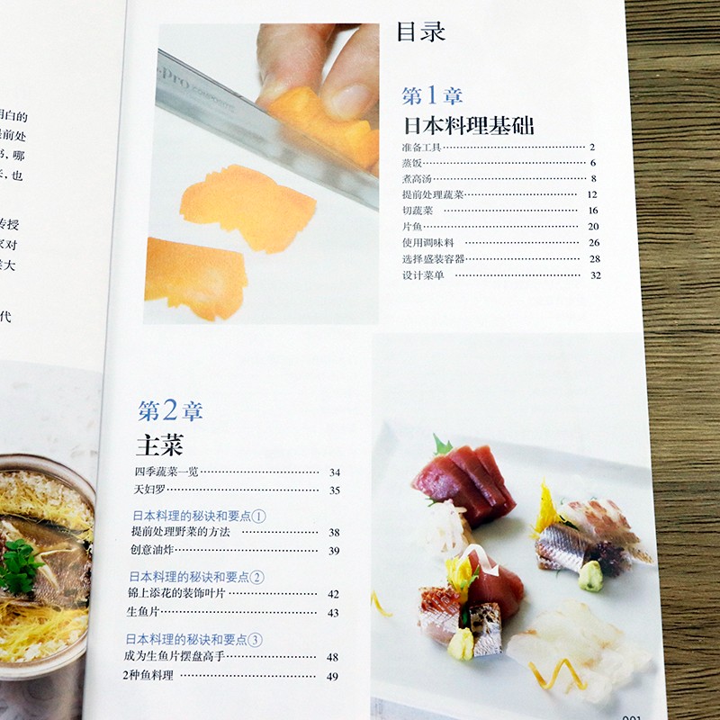 本書分為煎烤、燉煮、小碟與副菜與米飯和湯4個章節,介紹了日式料理中具有代表性的73款料理,用一步一圖的視頻教學模式詳細講解製作方法,包含我們熟知的日本料理,如照燒、烤魚、玉子燒、築前煮、壽司飯、日式涼拌菜等。作者在本書內容設計上非常用心,從日本料理基本的高湯製作和用法、燜米飯的方法、日式料理調味的基本原則開始講起,使初學者也能很快抓住日本料理的精髓,每款料理都有其來歷、特色、關鍵步驟的詳細講解和多年經驗分享,內容豐富實用,是想要學習日料和精進技術的讀者可遇不可求的指導書籍。