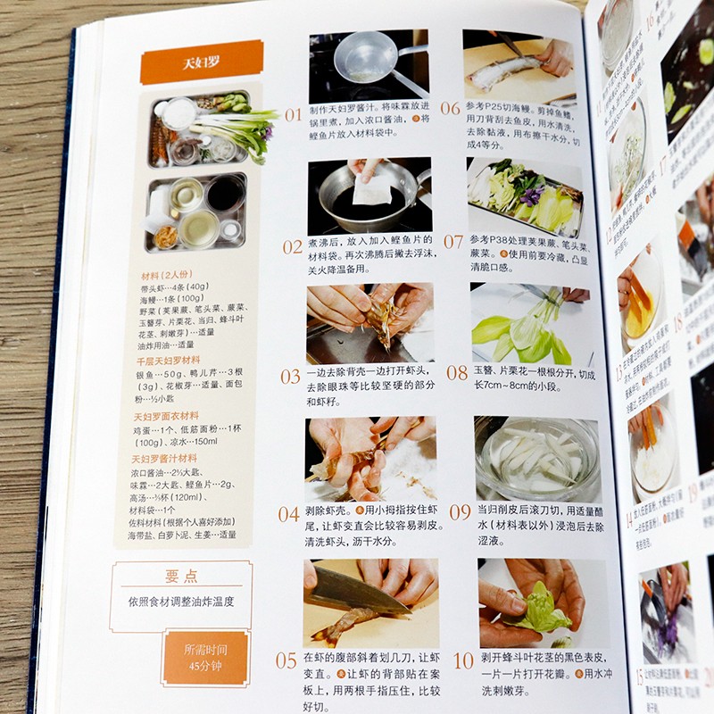 《日本料理製作大全》用超過1700幅步驟圖詳盡說明95道風味菜色的烹調方式。從主菜、配菜、小菜、湯品、米飯到漬物,一次滿足讀者對各式日本料理的學習需求。 27則實用烹飪重點,從菜刀及砂鍋的保養、擺盤技巧、**醬汁的做法、調理器具的活用,到日本全國湯品的趣味介紹,內容涵蓋實用與知識層面。無論是深受日本上班族喜愛的味噌串、上居酒屋必點的炸雞、作法簡單但風味萬千的蒸蛤蜊,或者人氣***的廣島鄉土料理牡蠣鍋,擔任調理學校講師長達十二年的川上文代都將透過詳盡的料理步驟,加上精心整理的烹飪重點,帶你化繁為簡,輕鬆掌握日本料理的烹調訣竅。