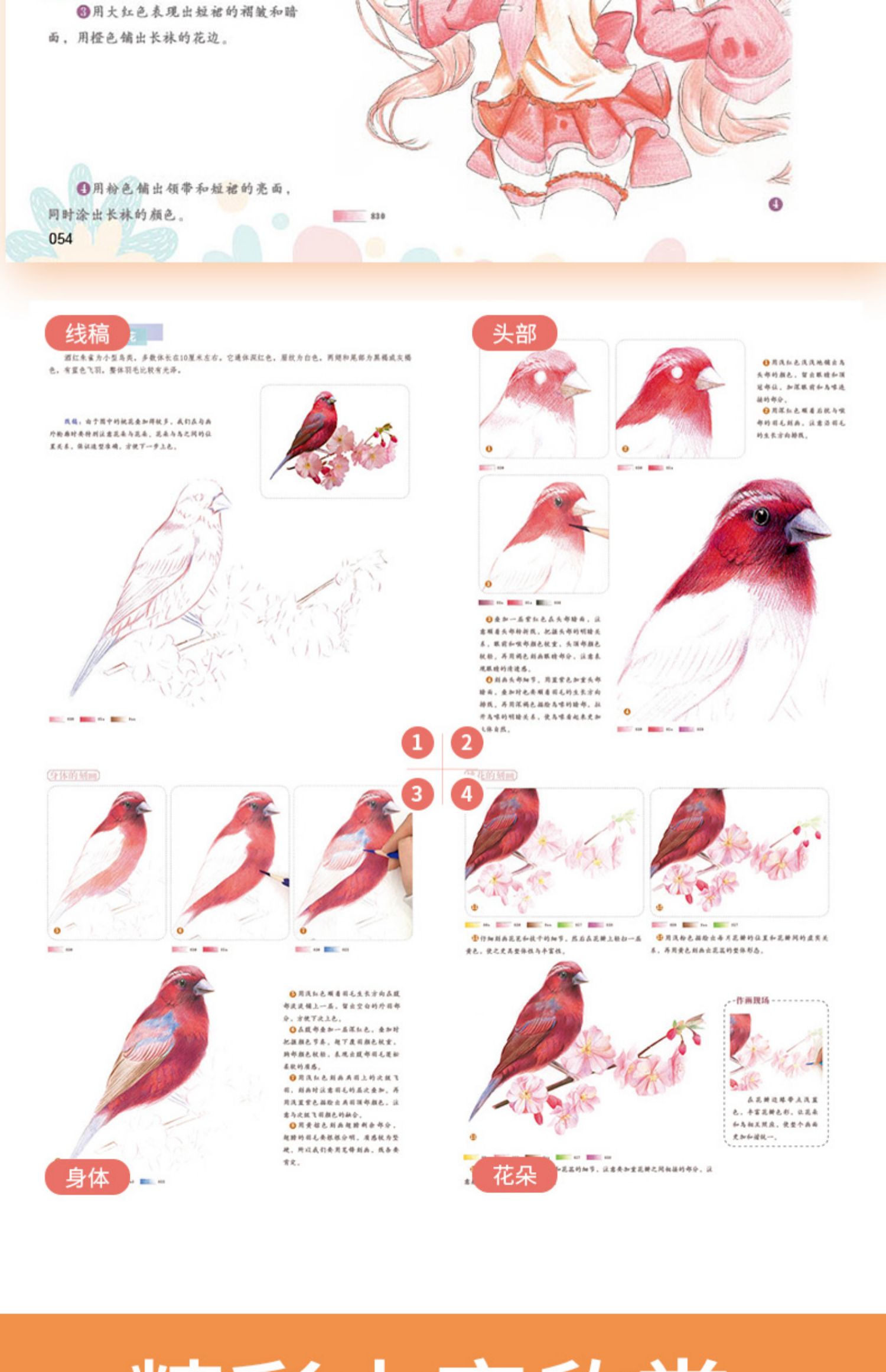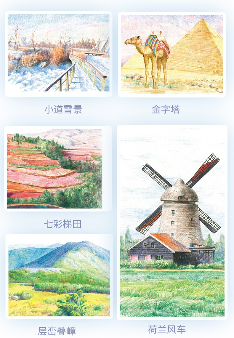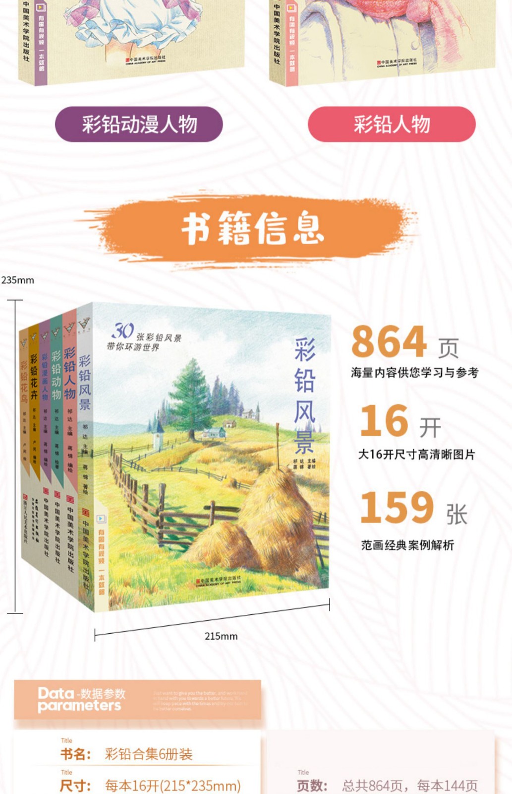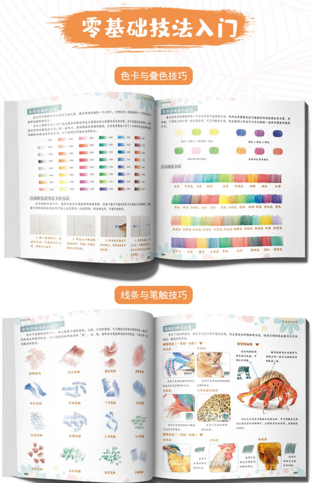 彩鉛畫合集6冊 彩色鉛筆 風景+花卉+漫畫+人物+動物+花鳥