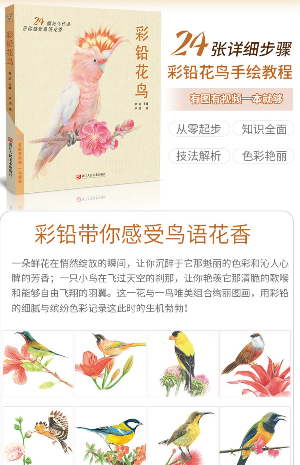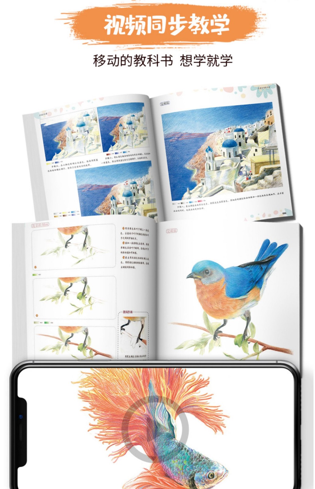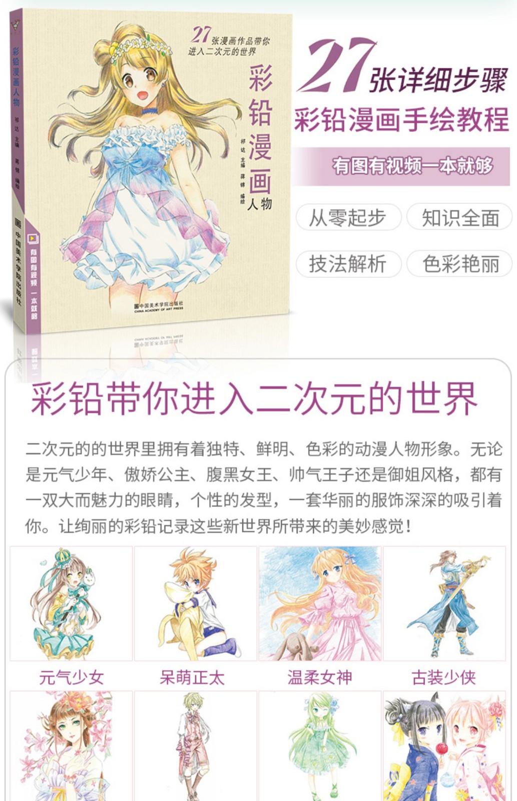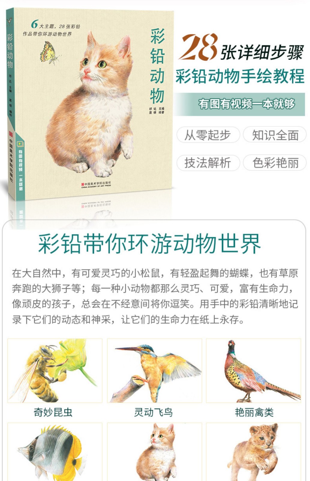 彩鉛畫合集6冊 彩色鉛筆 風景+花卉+漫畫+人物+動物+花鳥