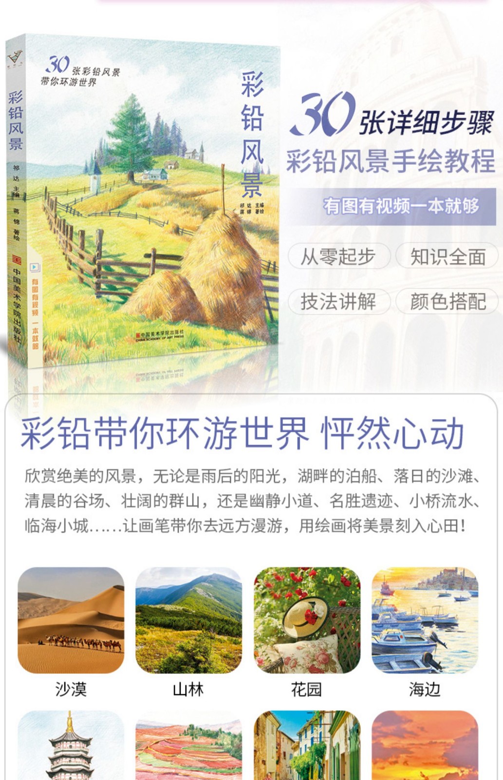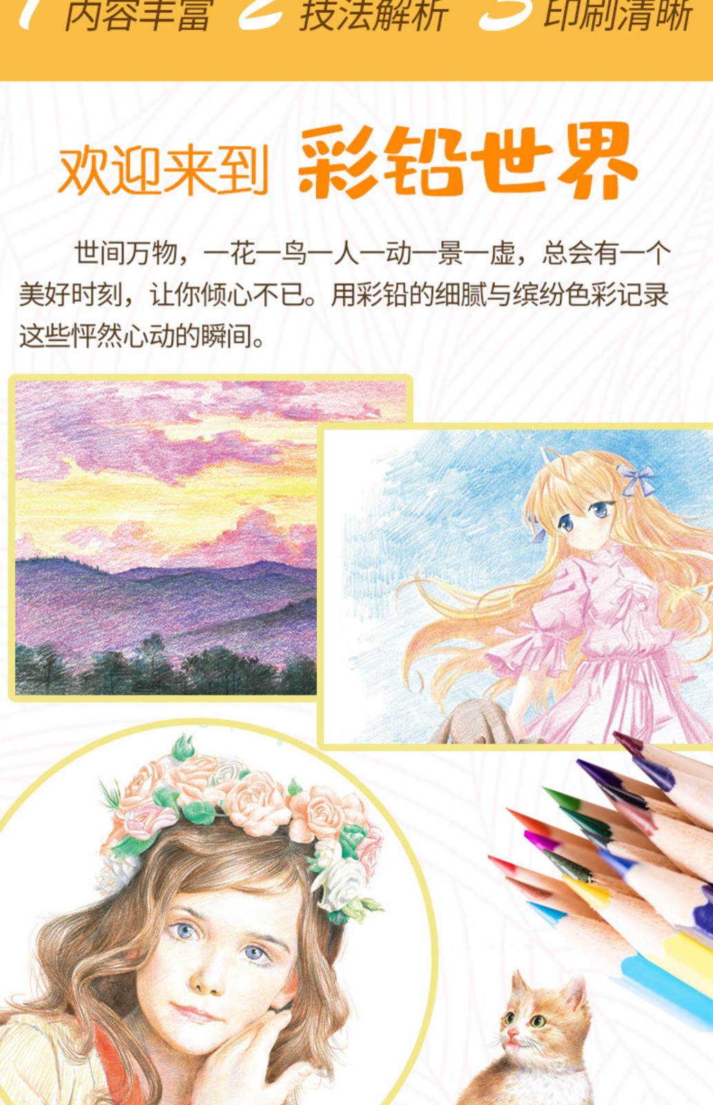 彩鉛畫合集6冊 彩色鉛筆 風景+花卉+漫畫+人物+動物+花鳥 塗色手繪基礎入門教程 基美術繪畫超寫實填色 動漫卡通臨摹畫冊