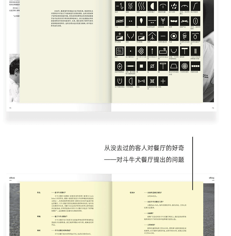 本書從早上6點15分開始,跟隨當地市場新鮮食材的腳步進入鬥牛犬餐廳。待主廚費朗到達研討會,晨間創意實驗會議正式開始……後廚的其他成員於下午2點30分抵達,前廳的日常準備逐漸就緒……客人於晚7點45分到達,而送走最後一位客人時已是凌晨2點。本書以充滿新意的架構和設計,為美食愛好者提供了一次被從業者奉為「行業機密」的神奇體驗。