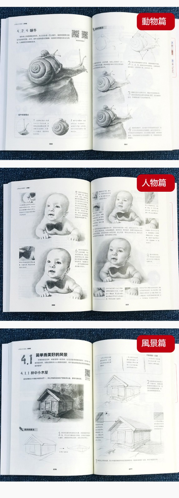 【全套4冊】从零起步学素描 零基础教程从入门到精通 植物动物风景人物素描速写