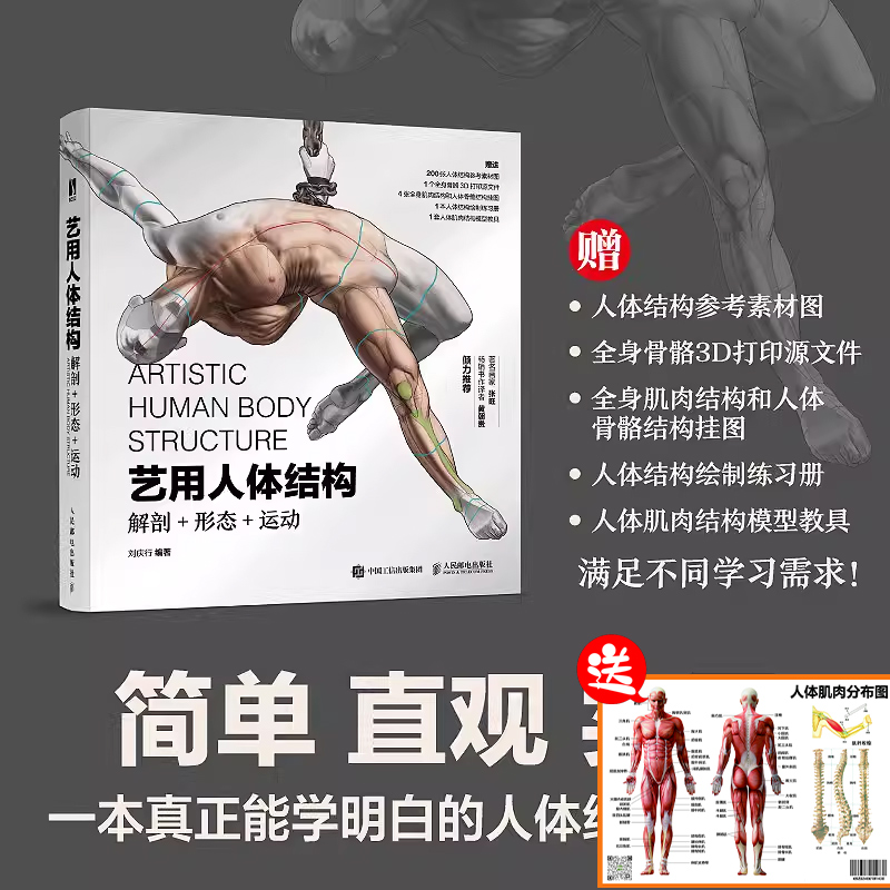 本書從解剖、形態、運動三方面系統、詳細且深入解析了人體結構的造型特徵及運動原理,剖析了複雜的人體結構與靈活多變的人體動態。書中的解剖部分對結構的造型特徵與相互間的位置關係進行分析講解,使讀者更加準確地理解人體構造,深入掌握人體結構及運動規律,並且能夠靈活運用。本書也講解了性徵差別、同一結構的個體差異,以及脂肪對人體形態的影響等容易被忽略的要點。希望讀者在學習人體繪畫時,不僅可以掌握骨骼結構與肌肉結構,還能從更多方面深入理解人體的造型結構,以便在繪畫中做到應對自如、得心應手。本書附贈全身骨骼模型3D列印源文件、高清人體結構參考材料圖等電子資源,以及大尺寸全身肌肉結構和人體骨骼結構掛圖、人體結構繪製練習冊、人體肌肉結構模型教具等實體學習輔助資源,以滿足讀者多方面的學習需求。本書適合作為設計師、插畫家等相關設計方向從業人員的工具書,也可作為高等院校藝術專業師生、藝考生的參考書。