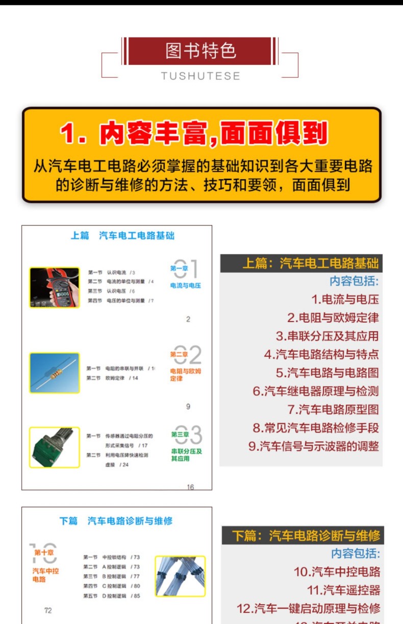 60個影片 高清解析汽車電工維修技能從17個電路基礎知識專案、檢測工具和儀器到15個汽車電氣系統檢修和故障診斷,真正做到全面自學汽車電工。