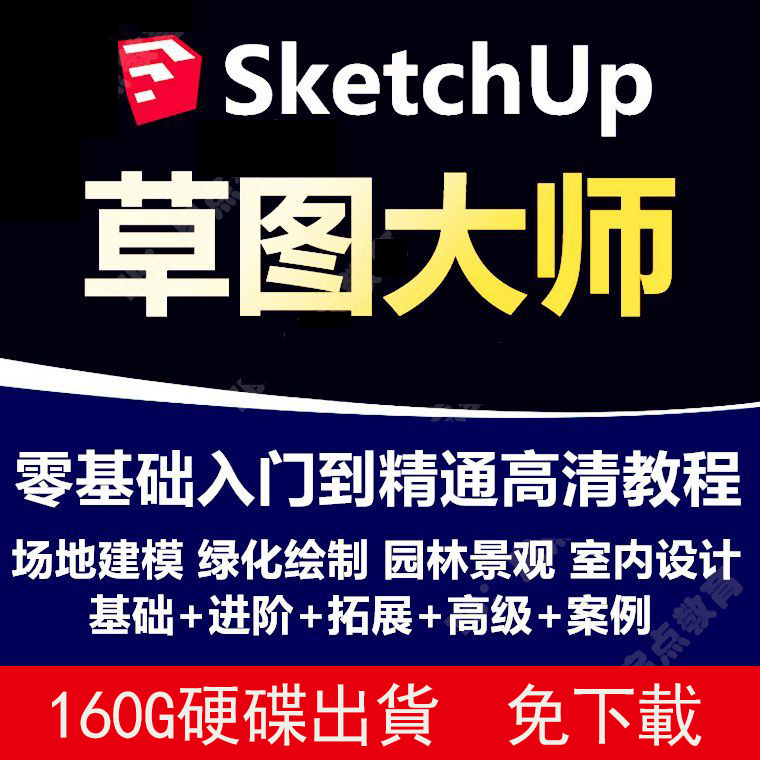 Sketchup 草圖大師全套視頻教程 景觀 室內 建築設計 Enscape建模渲染教程 SU設計園林景觀(160G 硬碟出貨 免下載 即插即看)