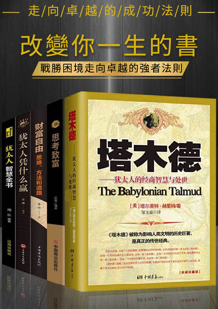 《塔木德》+《思考致富》+《猶太人智慧全書》+《猶太人憑什麼贏》+《財富自由》共5冊 僅需NT$1190