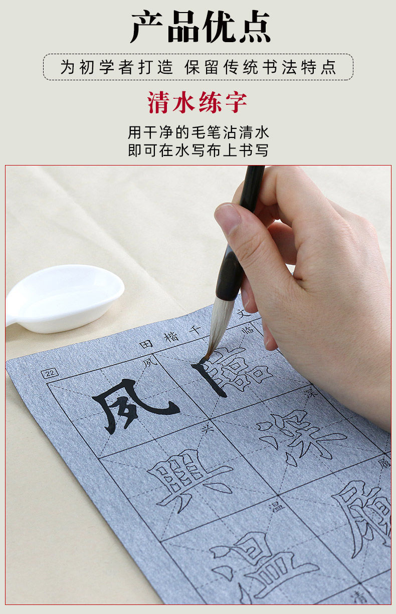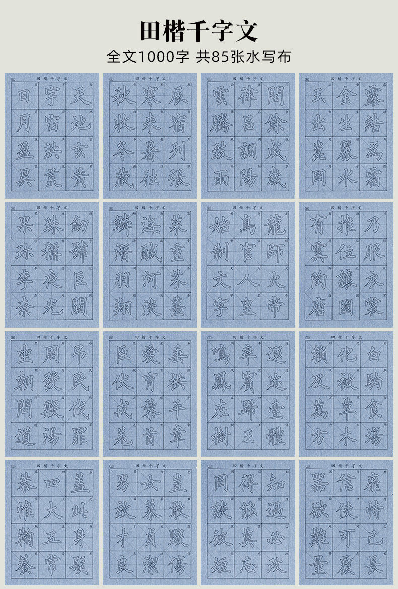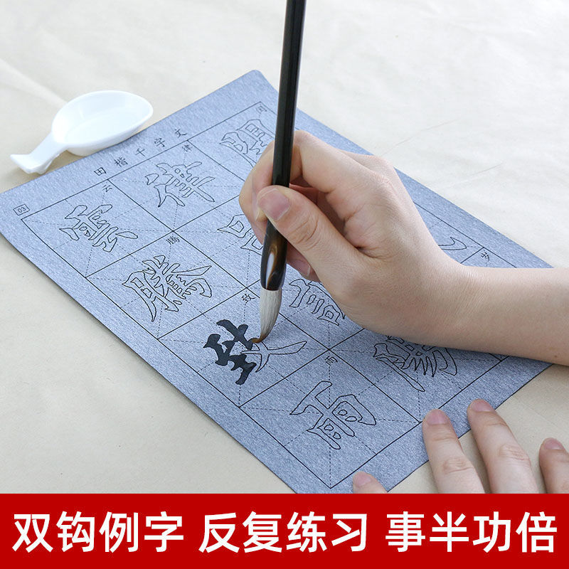 歐體田楷千字文毛筆字帖水寫布套裝84張 1000字 6厘米大字格(贈楷書專用毛筆+水碟)